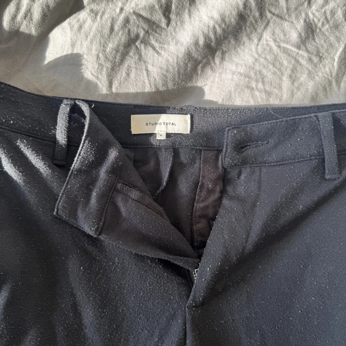 Svarta kostymbyxor från Studio Total med smal passform och klassisk design. Byxorna har bälteshällor, dragkedja och knappstängning framtill. Materialet är mjukt och har en lätt stretch för extra komfort. Perfekta för en clean och stilren look.