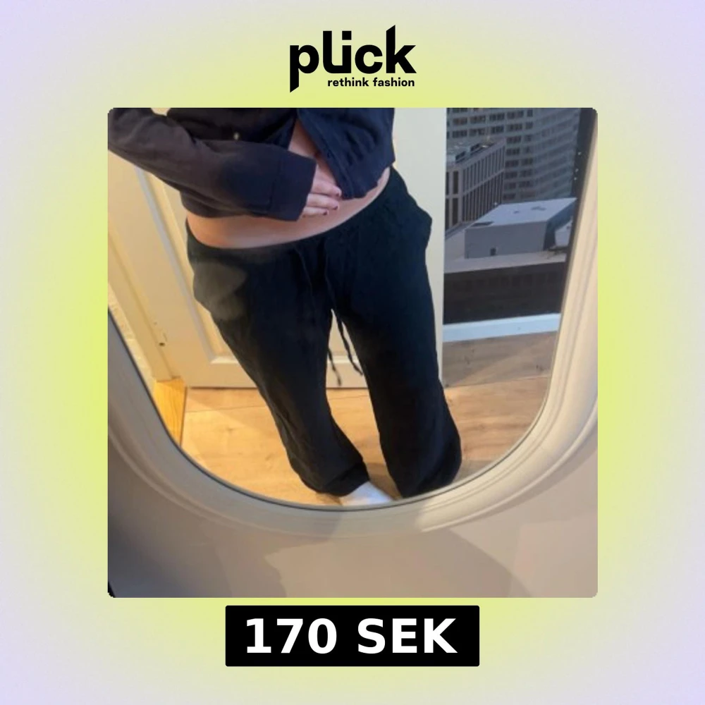 Säljer ett par svarta låga linnebyxor. Byxorna har raka, vida ben och materialet är lätt och andas, vilket gör dem sköna att bära hela dagen. Dessa säljs då de inte kommer till användning längre.