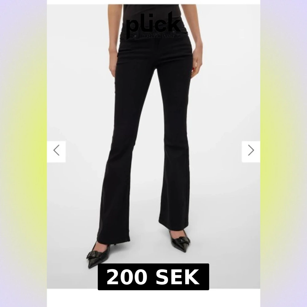 Snygga svarta lågmidjade jeans från Vero Moda med bootcut passform och klassisk femficksdesign. De är i storlek XS med längden 30 och har en låg midja. Byxorna är tillverkade i stretchigt bomullsmaterial för en bekväm känsla. Perfekta för dig som gillar en stilren och trendig look. Jeansen är i mycket bra skick och har inga fel. Jag säljer dem eftersom de är något för korta för mig som är 163 cm. De passar därför perfekt för dig som är under 163 cm eller dig som föredrar