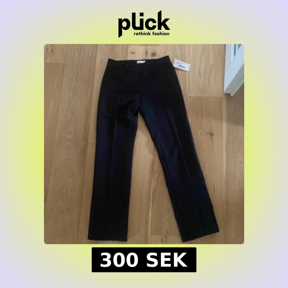 Snygga svarta lågmidjade byxor från Nelly med raka ben. Perfekta för en stilren look. Byxorna har en enkel design med hällor för bälte och en diskret bakficka. Passar utmärkt för både vardag och mer uppklädda tillfällen. Dom är helt oanvända