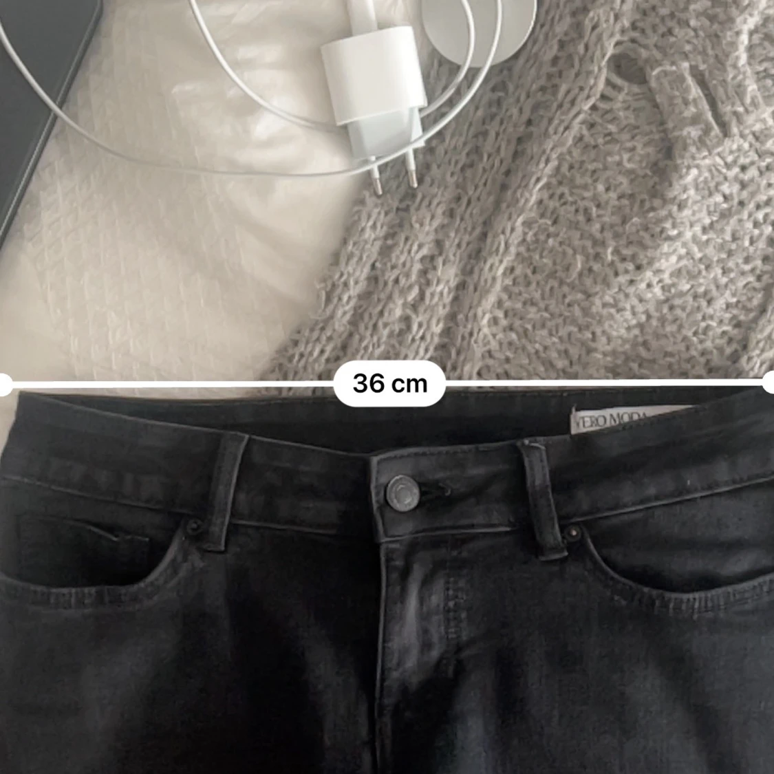 svarta lågmidjade jeans från veromoda i storlek M/32. dom passar mig och jag är 172. midjan rakt över: 36cm innerbenslängd: 78cm i jättebra skick