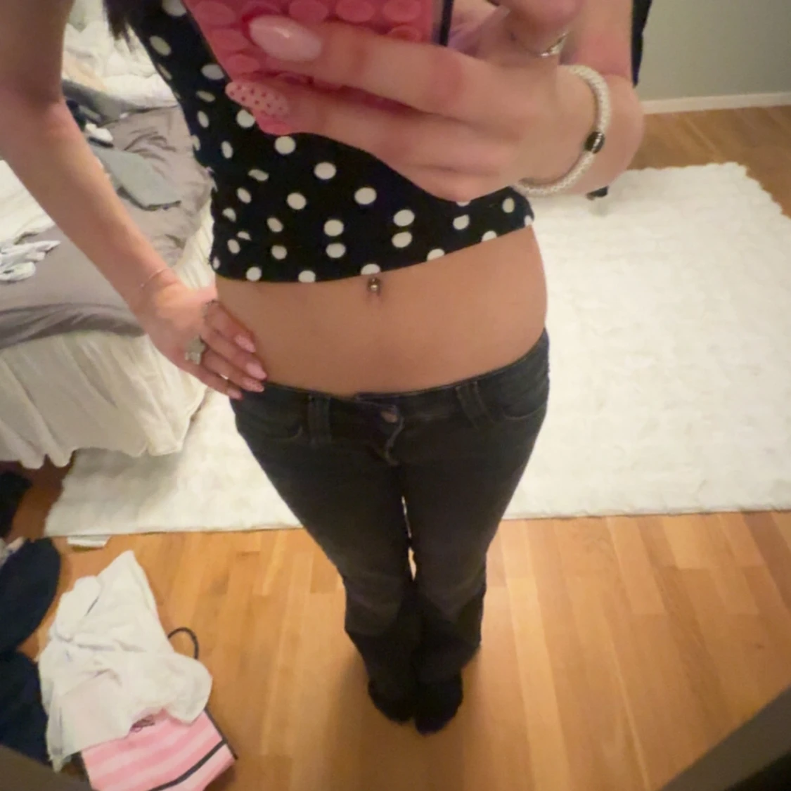 Säljer ett par svarta jeans från Weekday med låg midja och klassisk femficksdesign. Jeansen har en bootcut passform och är tillverkade i ett stretchigt bomullsmaterial för en bekväm känsla. Perfekta till din vardagsstil.