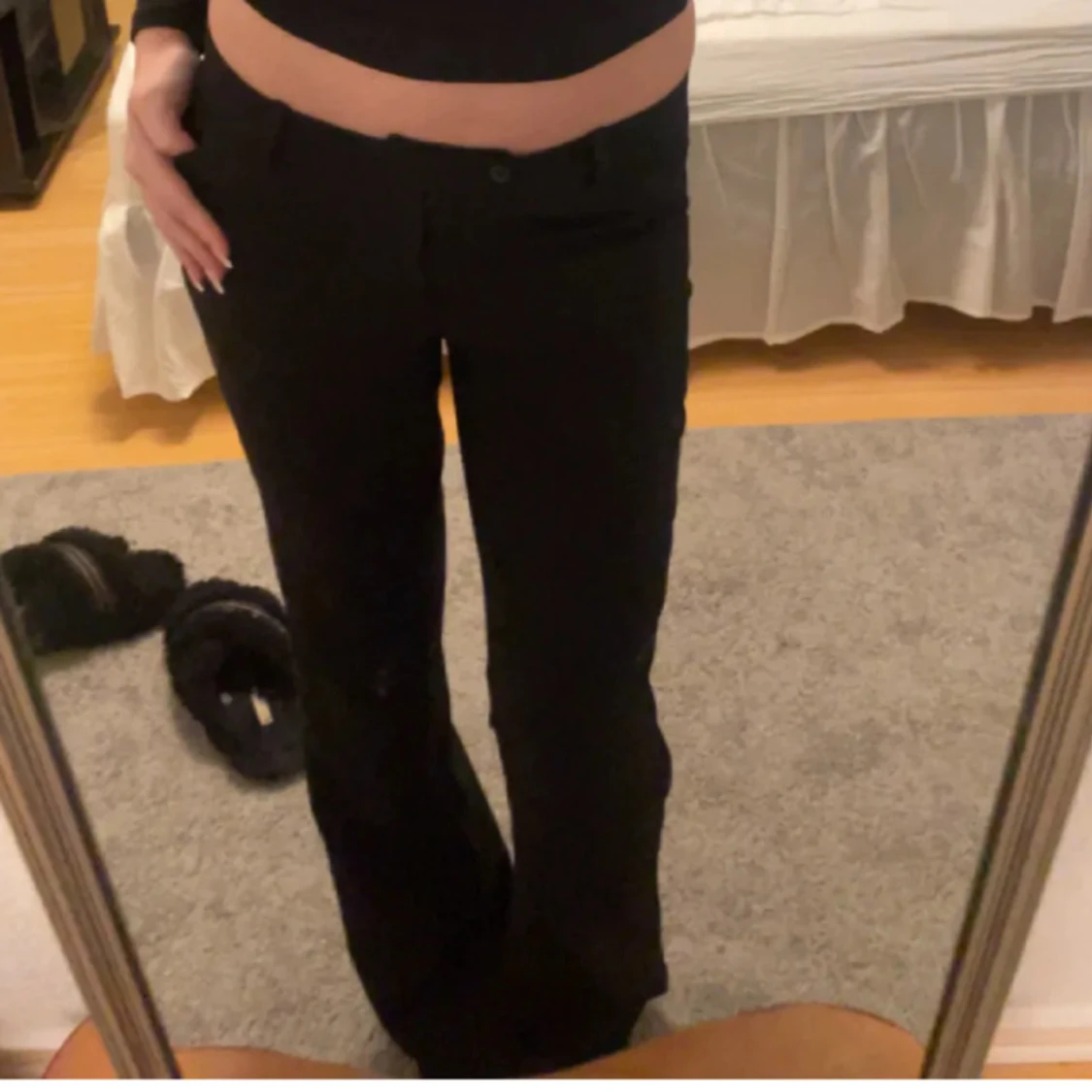 Säljer mina svarta lågmidjade kostymbyxor. Säljer på grund av att de är lite fel i storleken, så har inte använt mer än två gånger💗