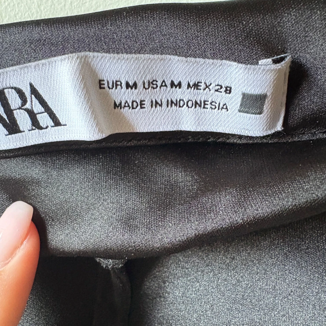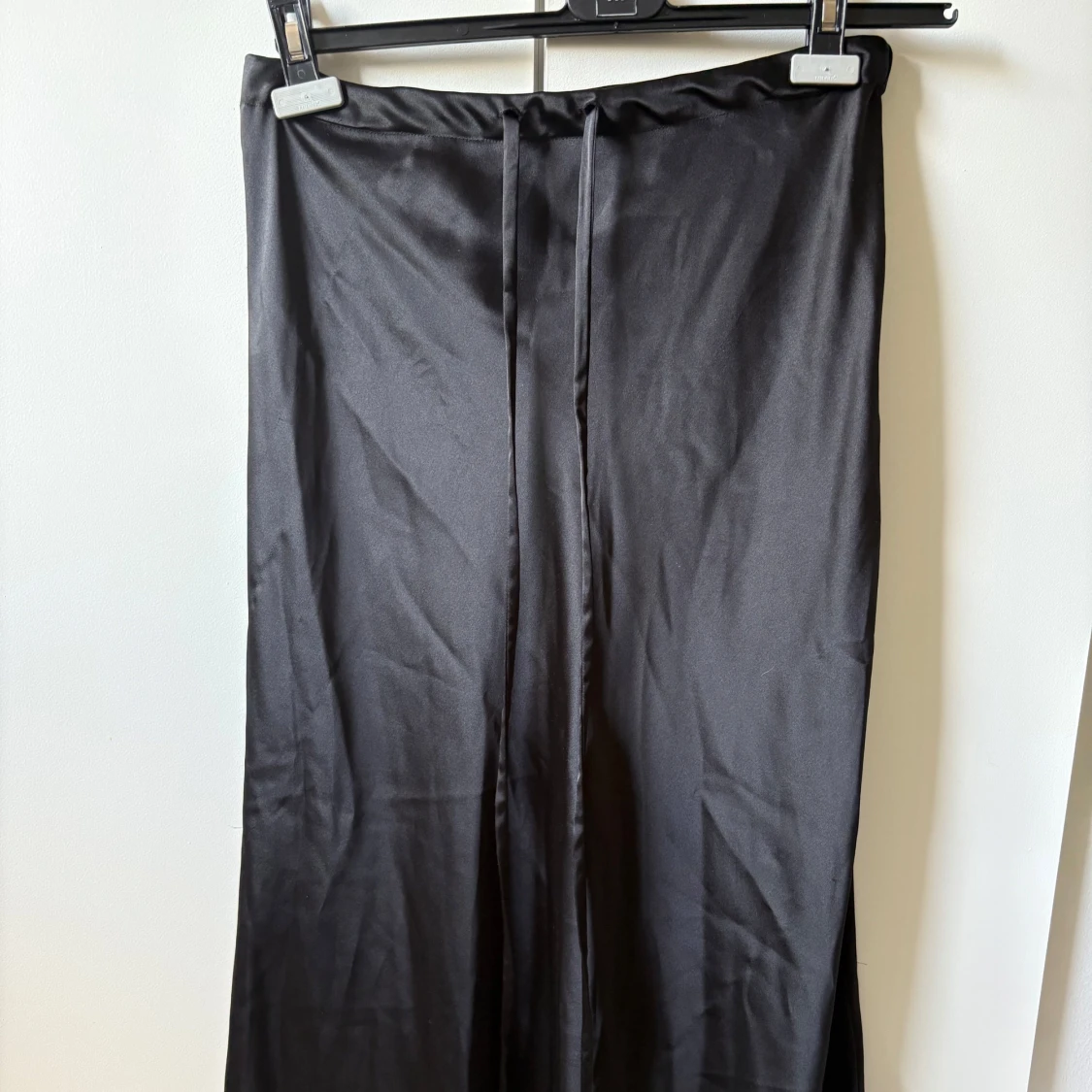 Säljer en svart långkjol från Zara i satinliknande material. 🖤