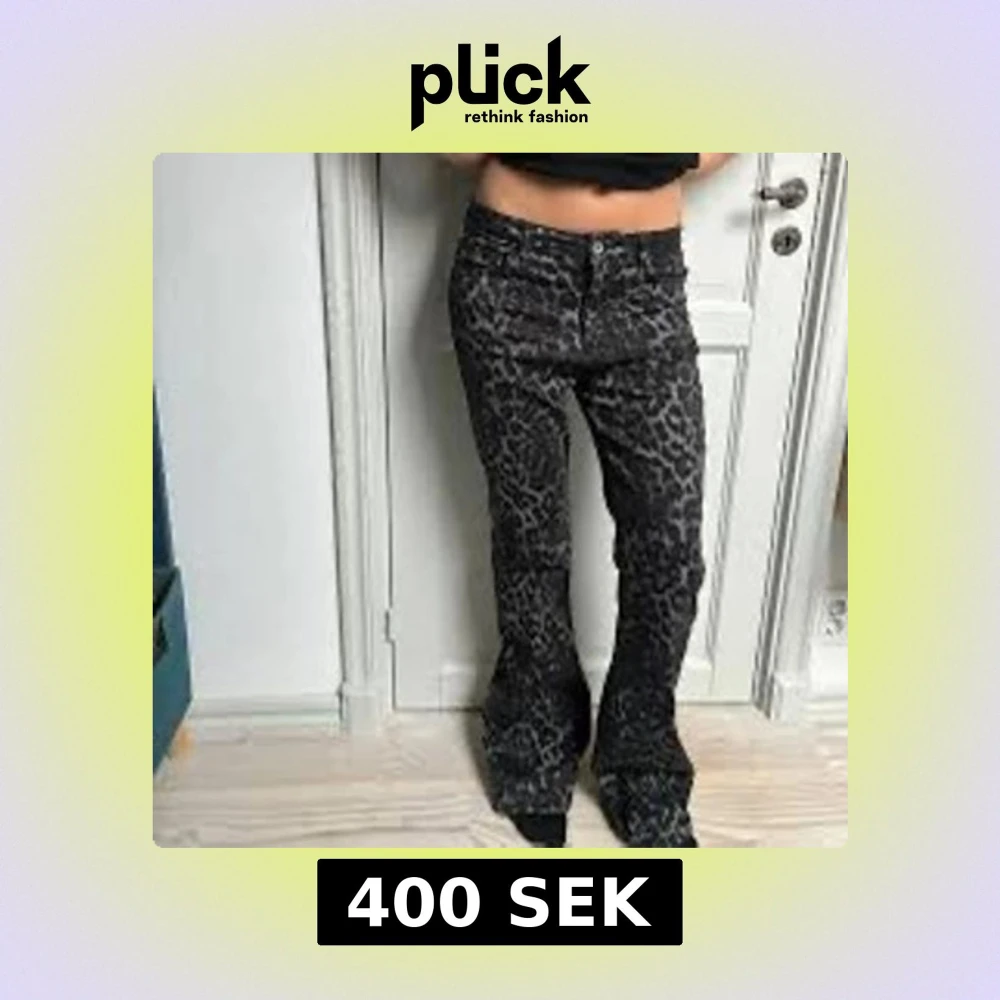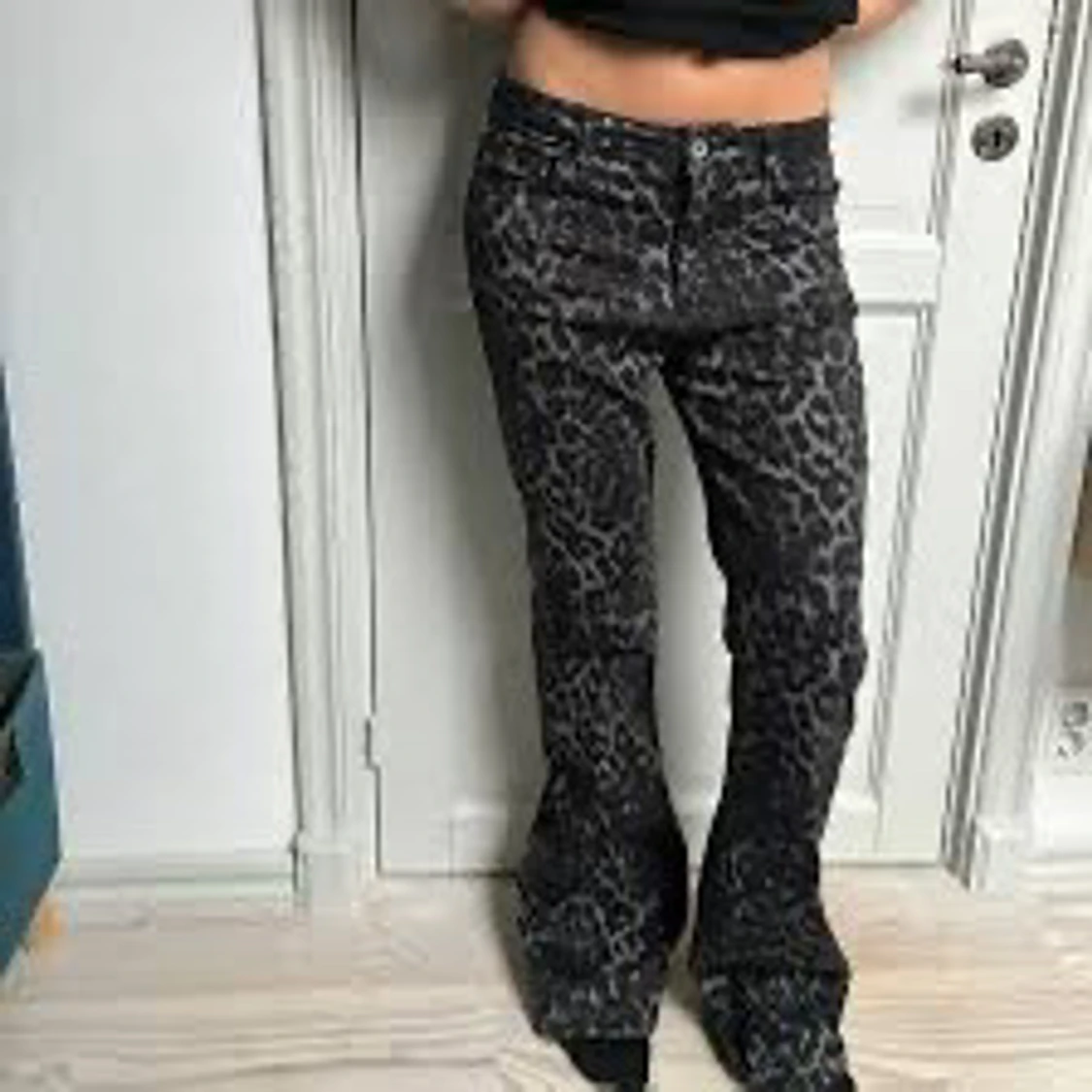 Snygga svarta byxor med leopardmönster och bootcut passform. Byxorna har normal midja och är perfekta för dig som vill sticka ut med ett coolt mönster. Materialet känns mjukt och stretchigt för extra komfort.