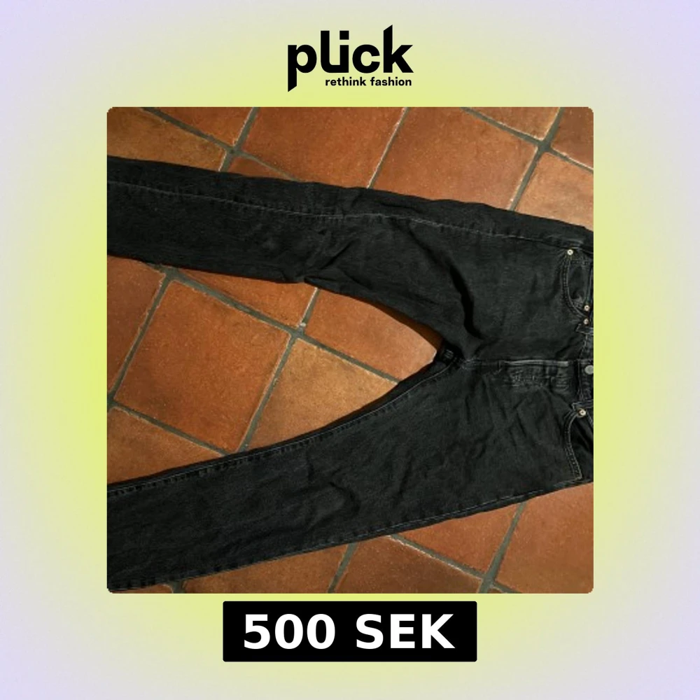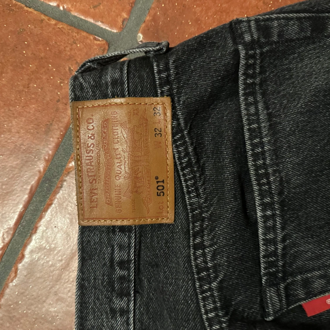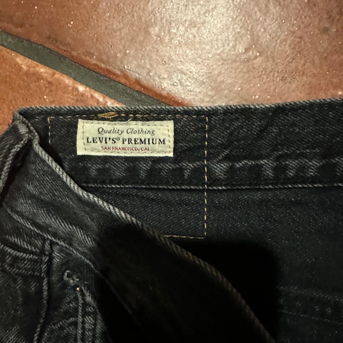 Klassiska svarta Levi's 501 jeans i denim. De har en rak passform och knappgylf. Perfekta för en stilren look.