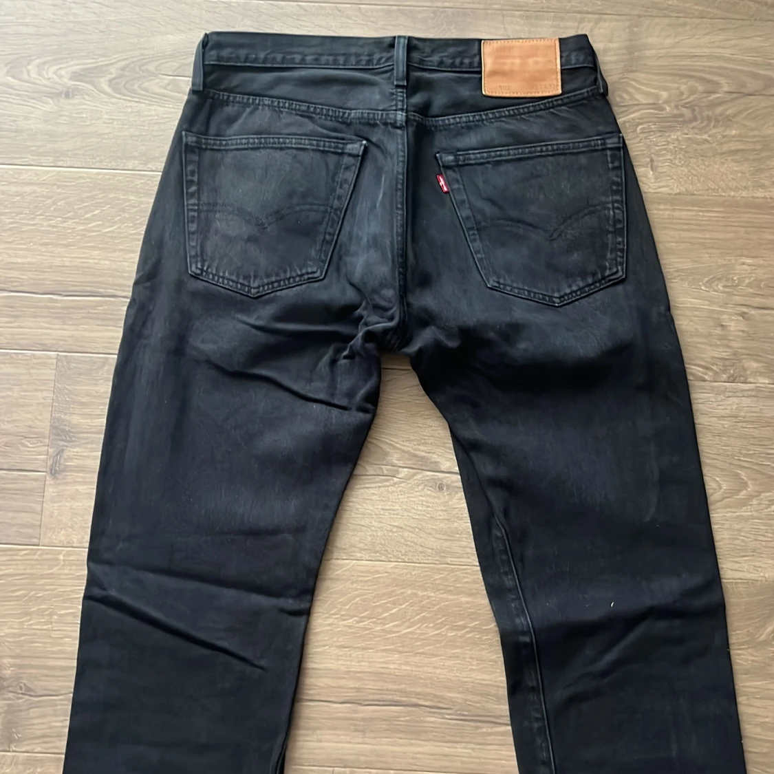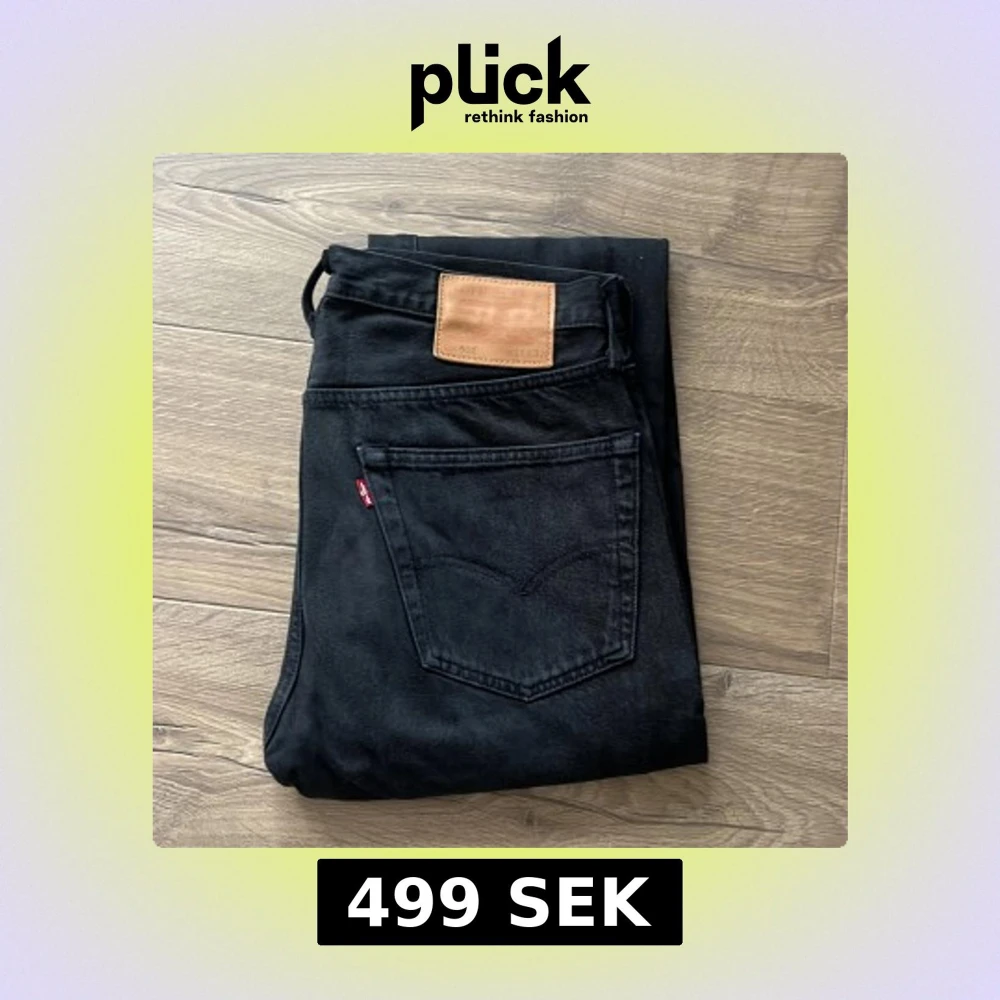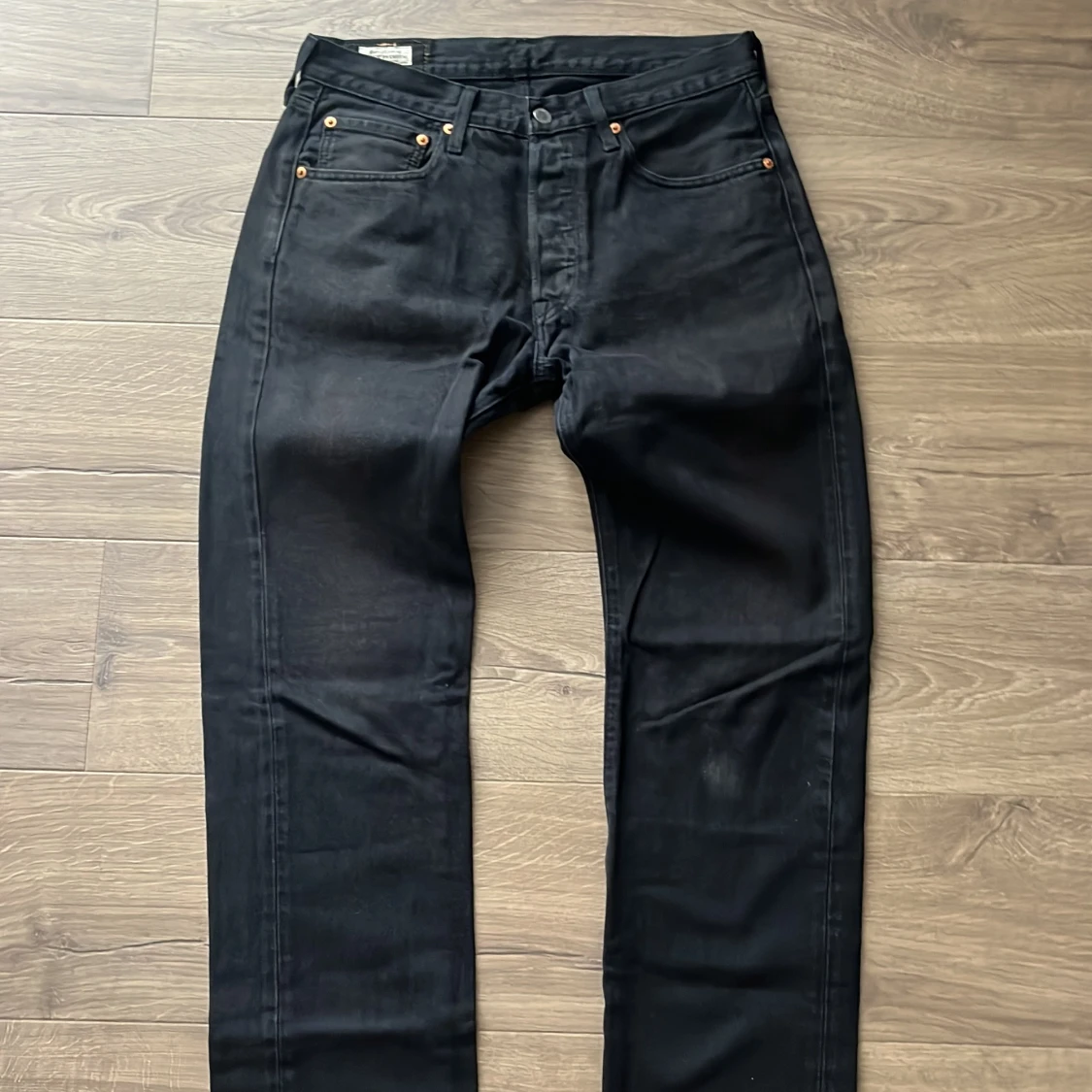 Svarta Levi's 501 jeans med klassisk rak passform och fem fickor. Jeansen har knappgylf, snygga nitar och den ikoniska läderpatchen bak i midjan. Tillverkade i robust denim som ger en tidlös look. Perfekta för dig som gillar en clean och stilren vibe.