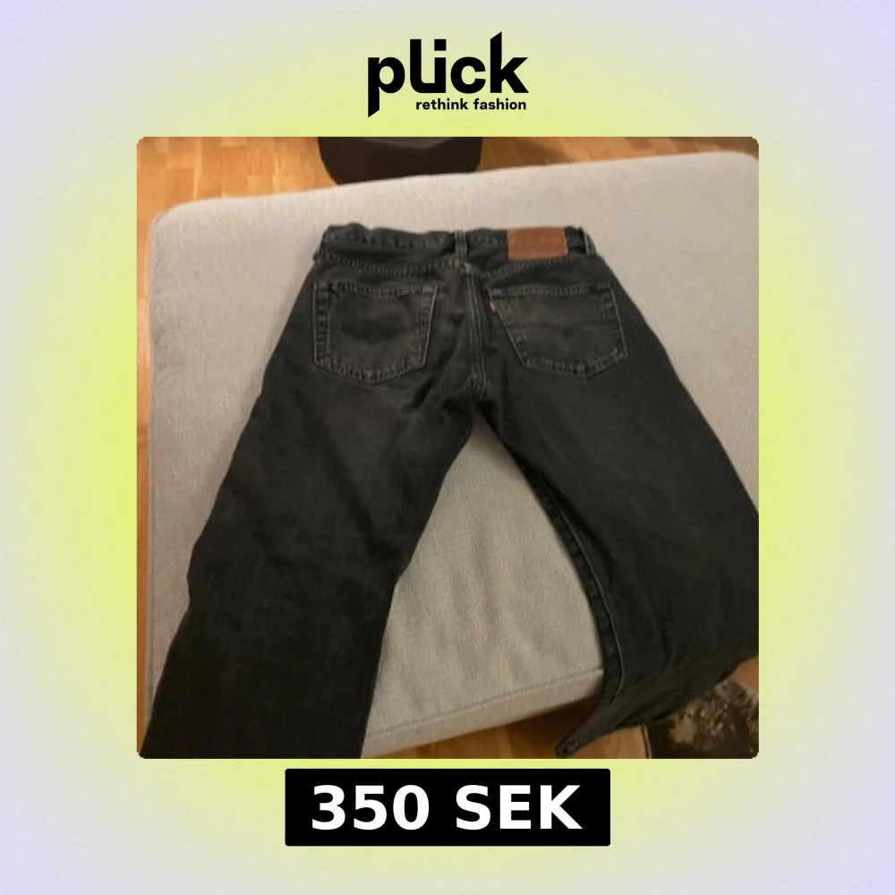 Säljer ett par klassiska svarta Levis 501 jeans. De har en rak passform och är tillverkade i slitstarkt denim. Perfekta för en tidlös stil.