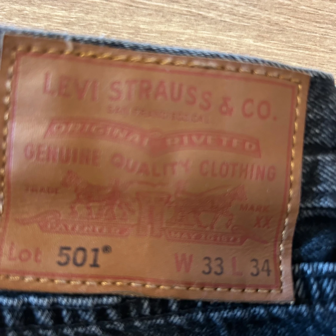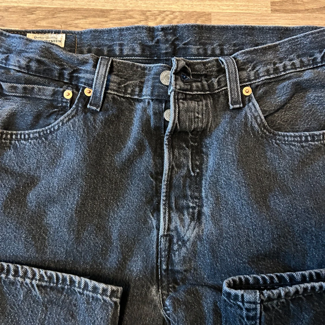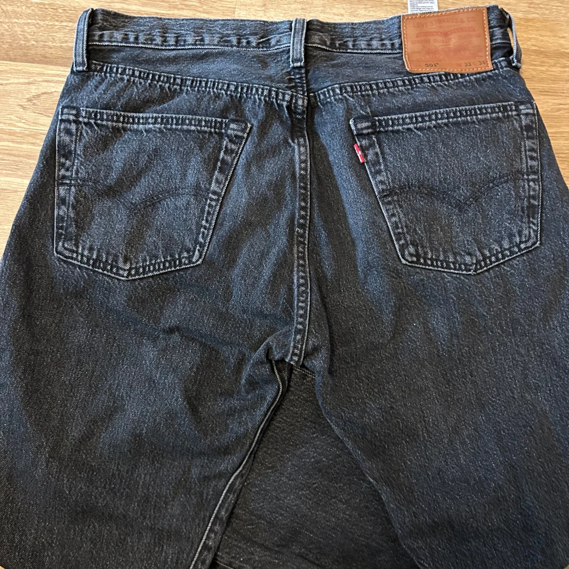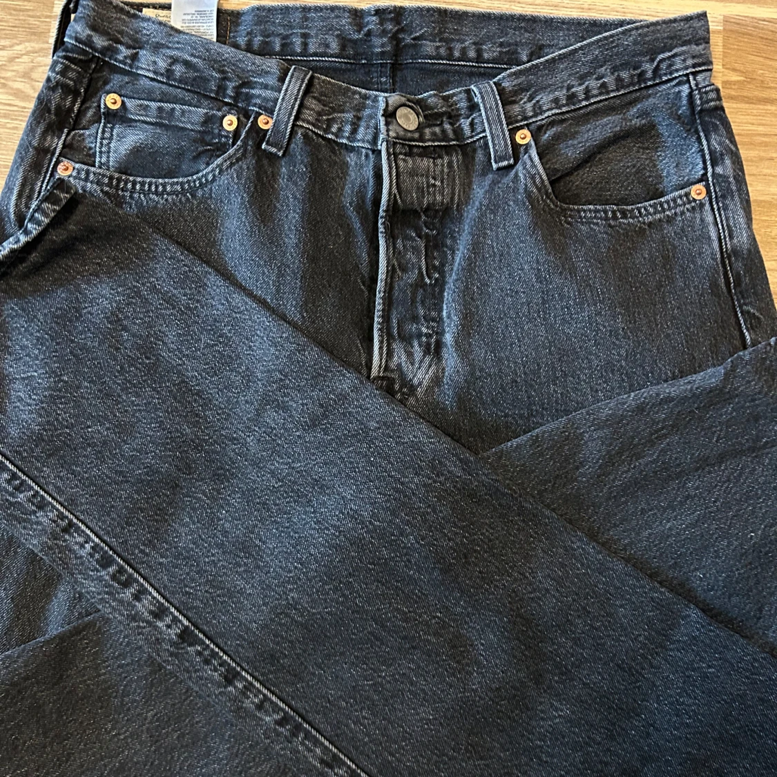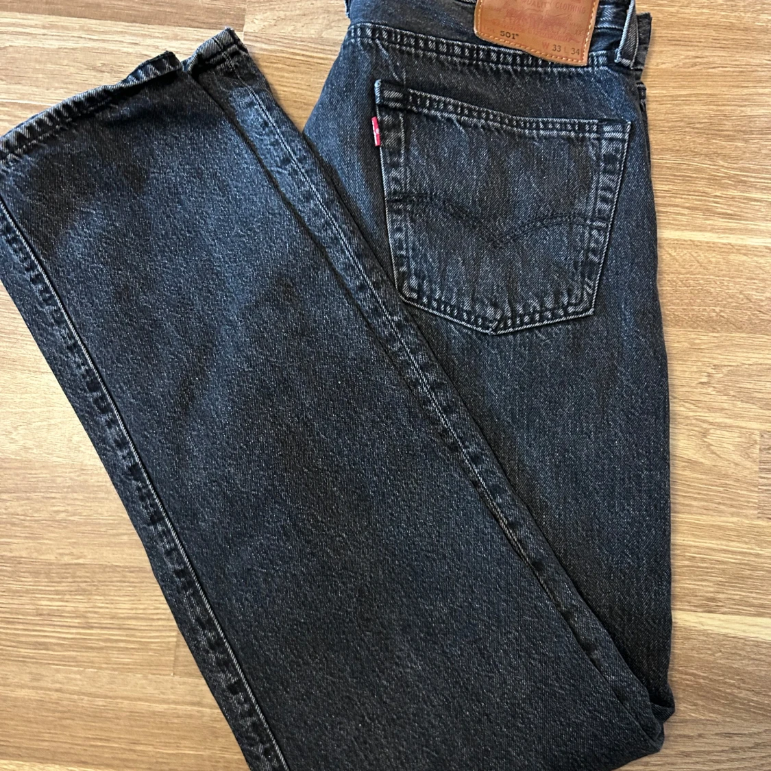 Säljer ett par klassiska svarta Levis 501 jeans. De har en knappgylf och fem fickor. Perfekta för en stilren look. Passar till det mesta och är ett måste i garderoben. De har storlek W33 L33