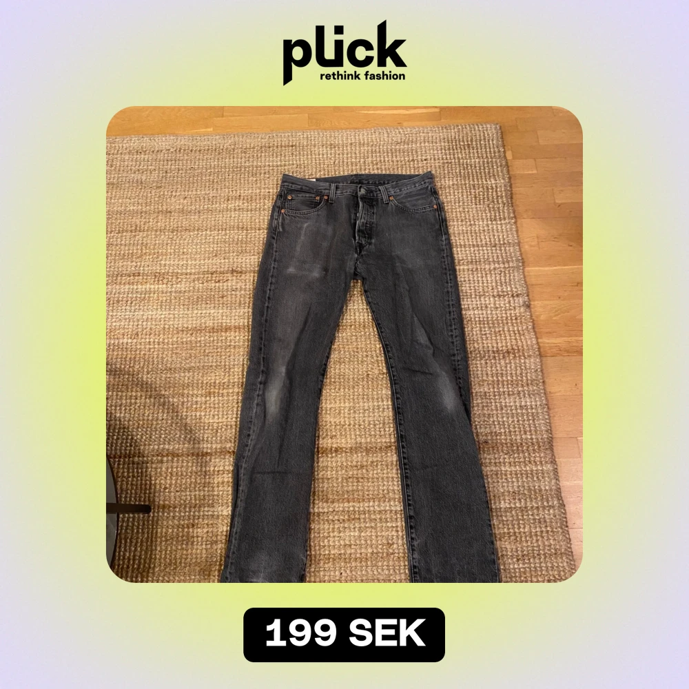 Säljer ett par klassiska svarta Levis 501 jeans. De har en straight passform. Perfekta för både vardag och fest. Dragkedja och knappstängning framtill med fem fickor. Litet hål vid skrevet men går enkelt att sy dit.