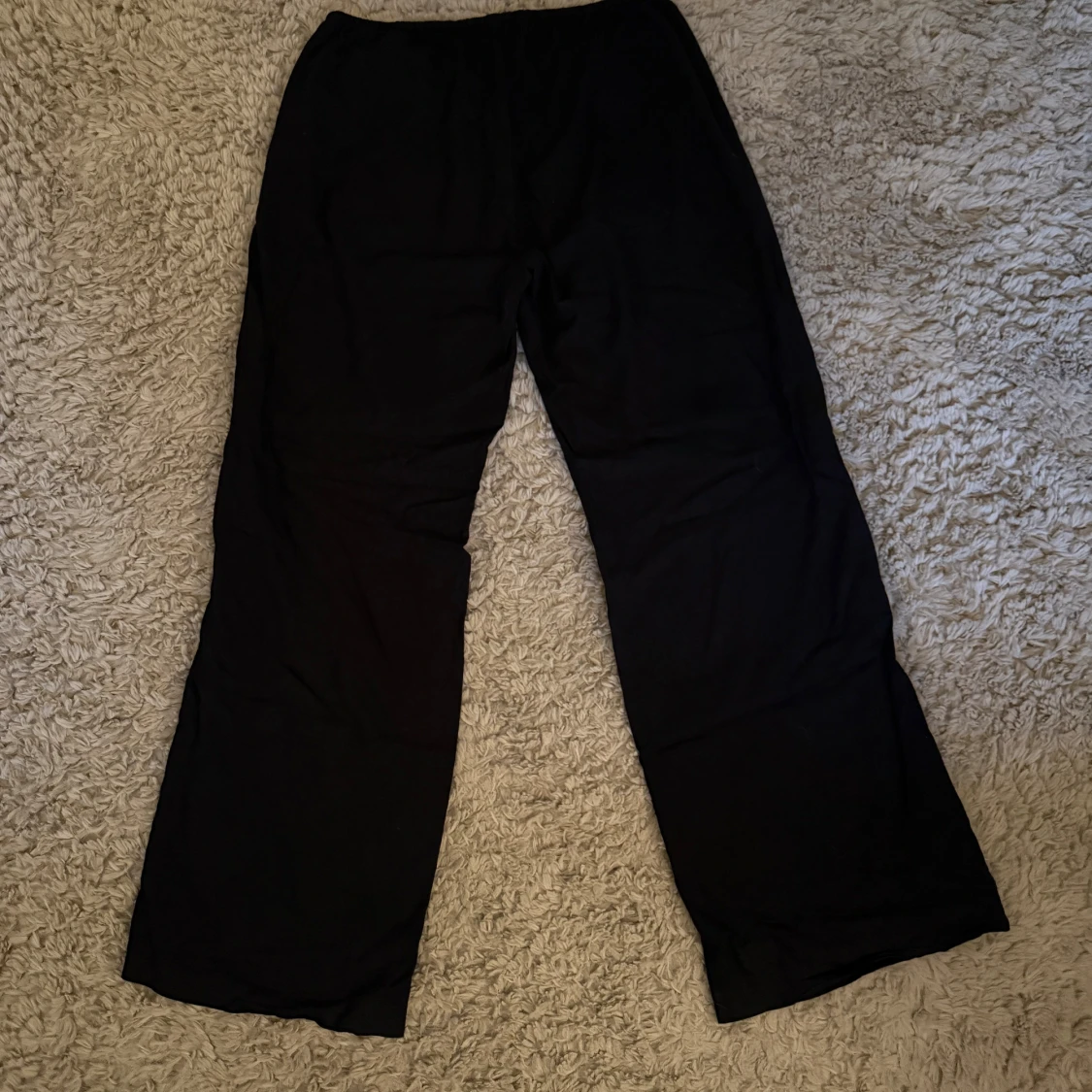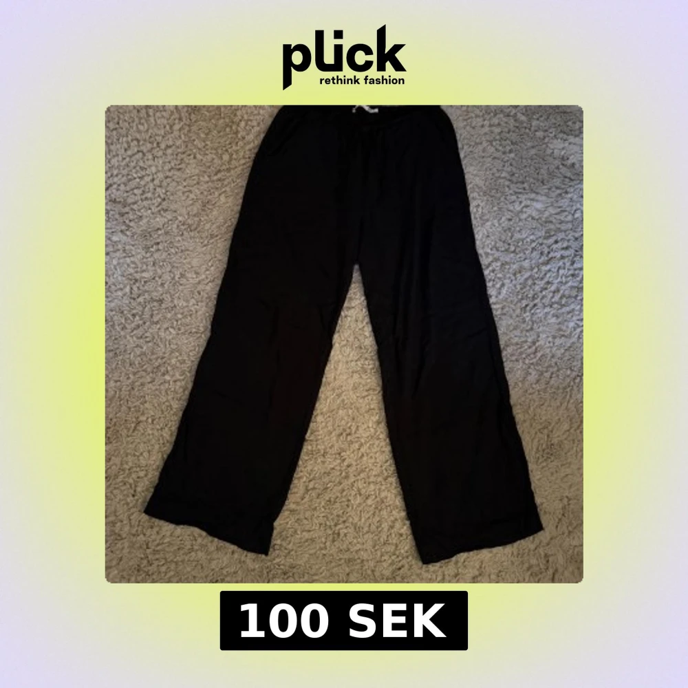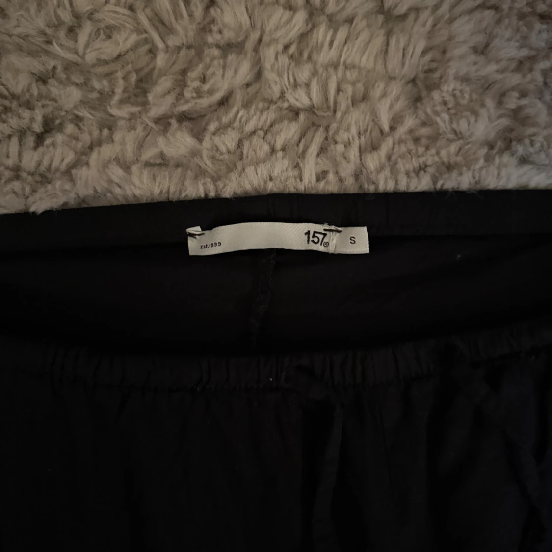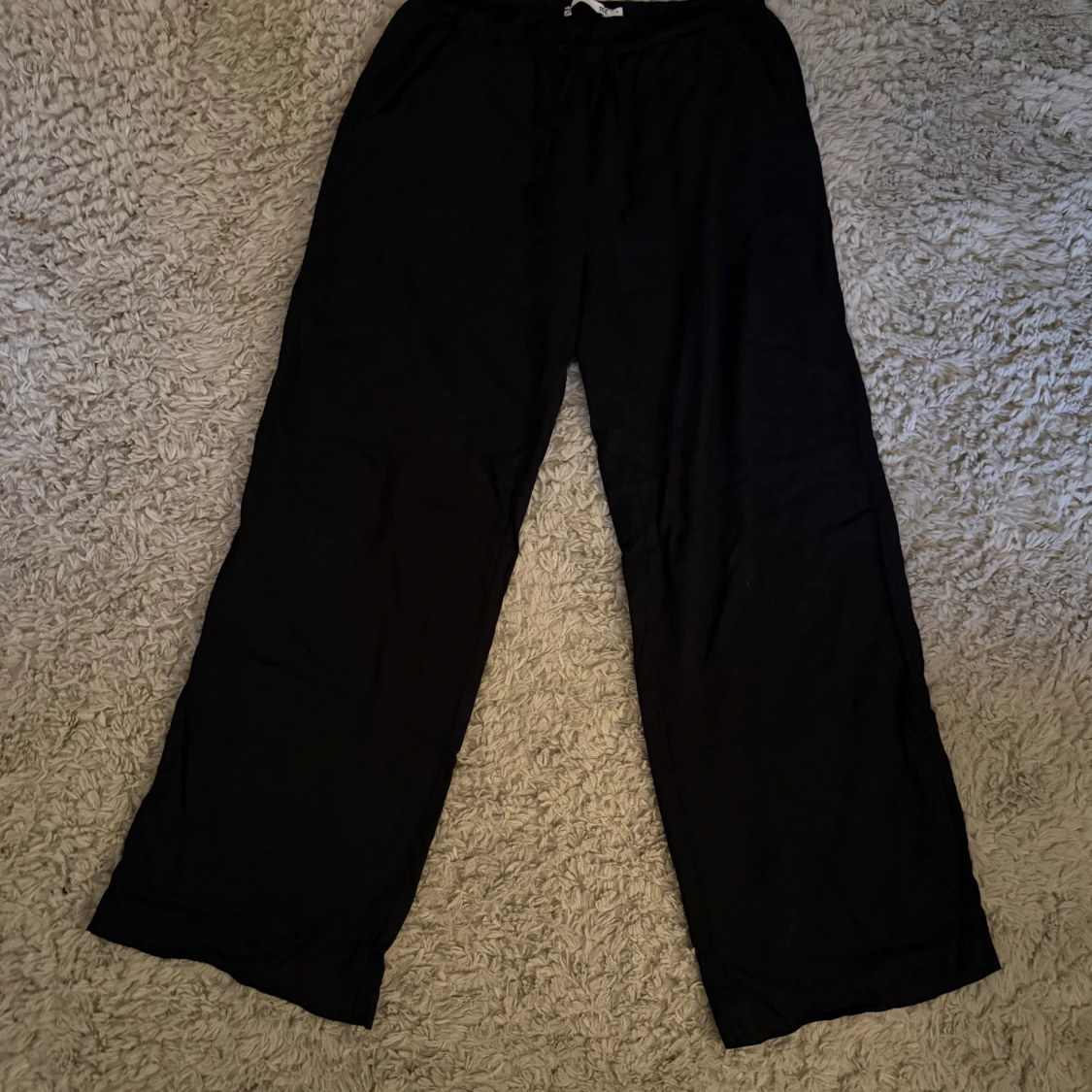 Svarta linnebyxor från 157 i storlek S. De har en avslappnad passform med resår i midjan och raka, vida ben. Perfekta för en chill och bekväm stil. Materialet känns mjukt och lätt, vilket gör dem sköna att bära hela dagen.
