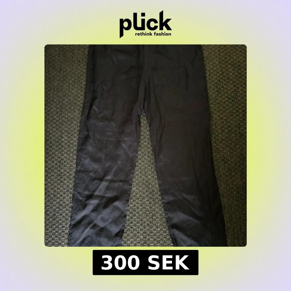 Svarta linnebyxor från H&M med regular fit. Byxorna har resår i midjan och är tillverkade i naturligt linne, vilket gör dem lätta och svala. Perfekta för dig som gillar enkel och stilren design.