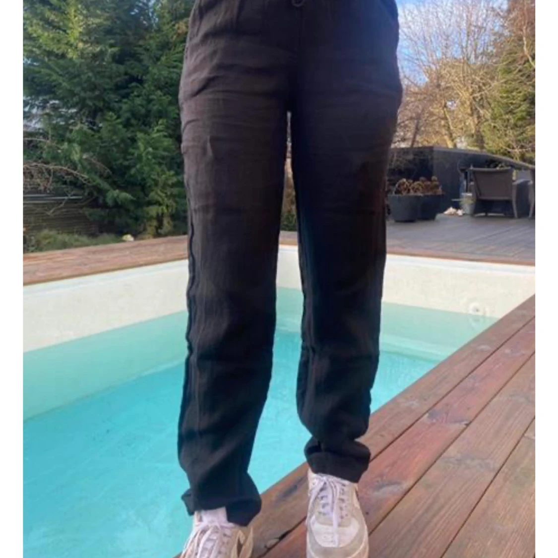 Snygga svarta linnebyxor med rak passform och hög midja. Byxorna har en enkel design utan synliga detaljer och passar perfekt till både sneakers och klackar. Sköna och luftiga, perfekta för varmare dagar. Nästan aldrig använda, pris kan diskuteras vid snabb affär