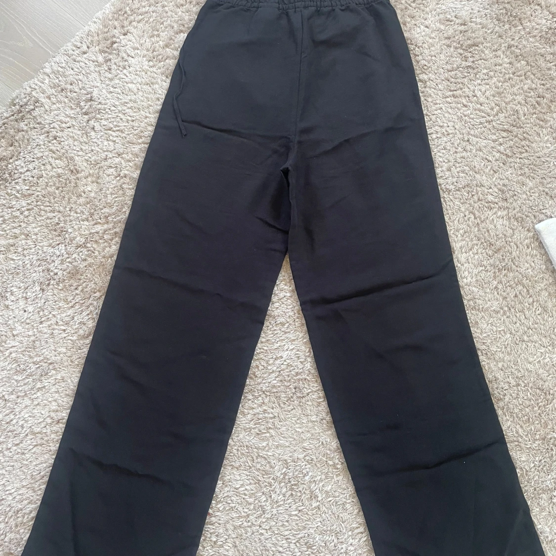 Svarta linnebyxor med rak passform. Rätt stora i storleken. Använda 1 gång.