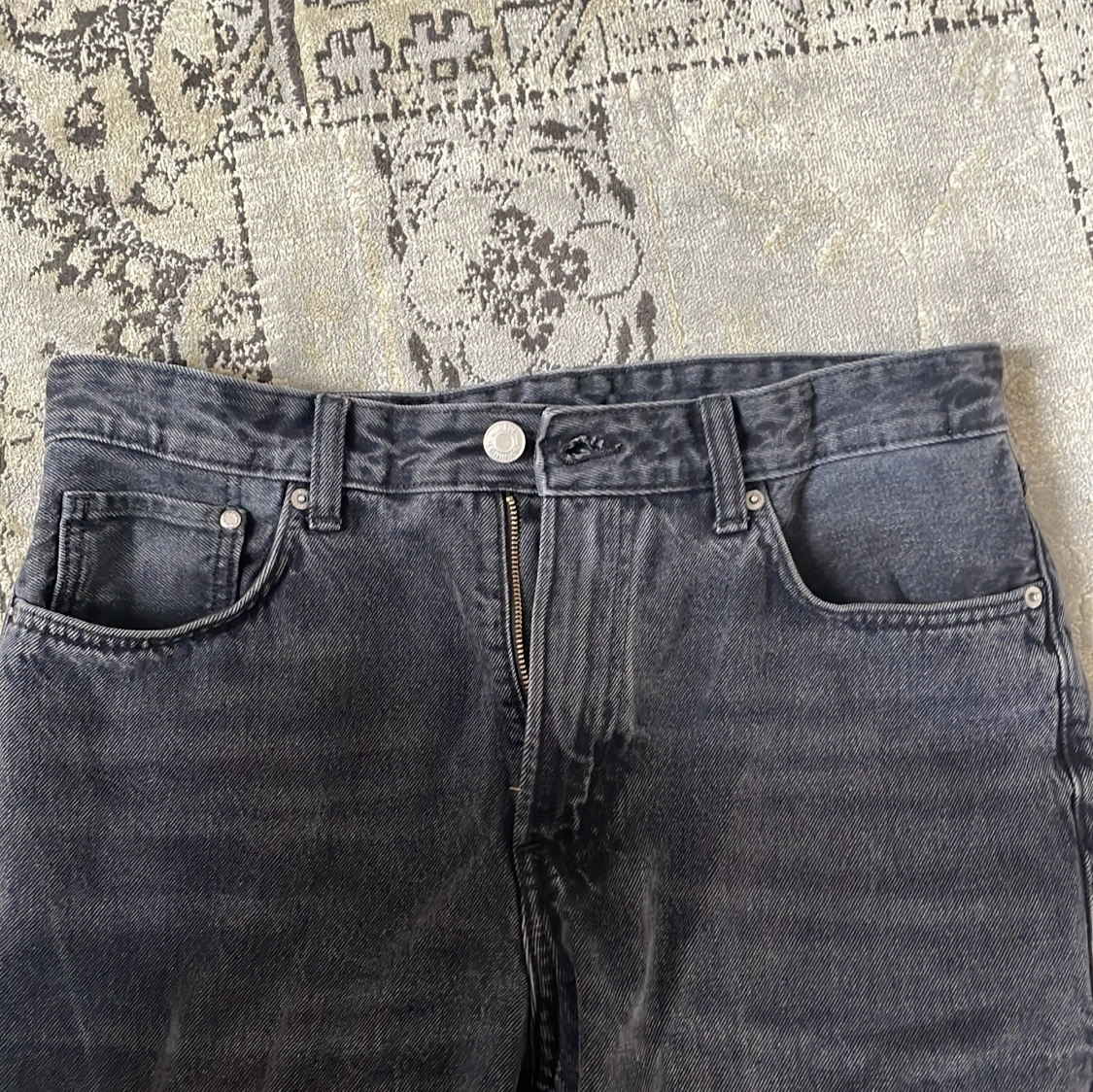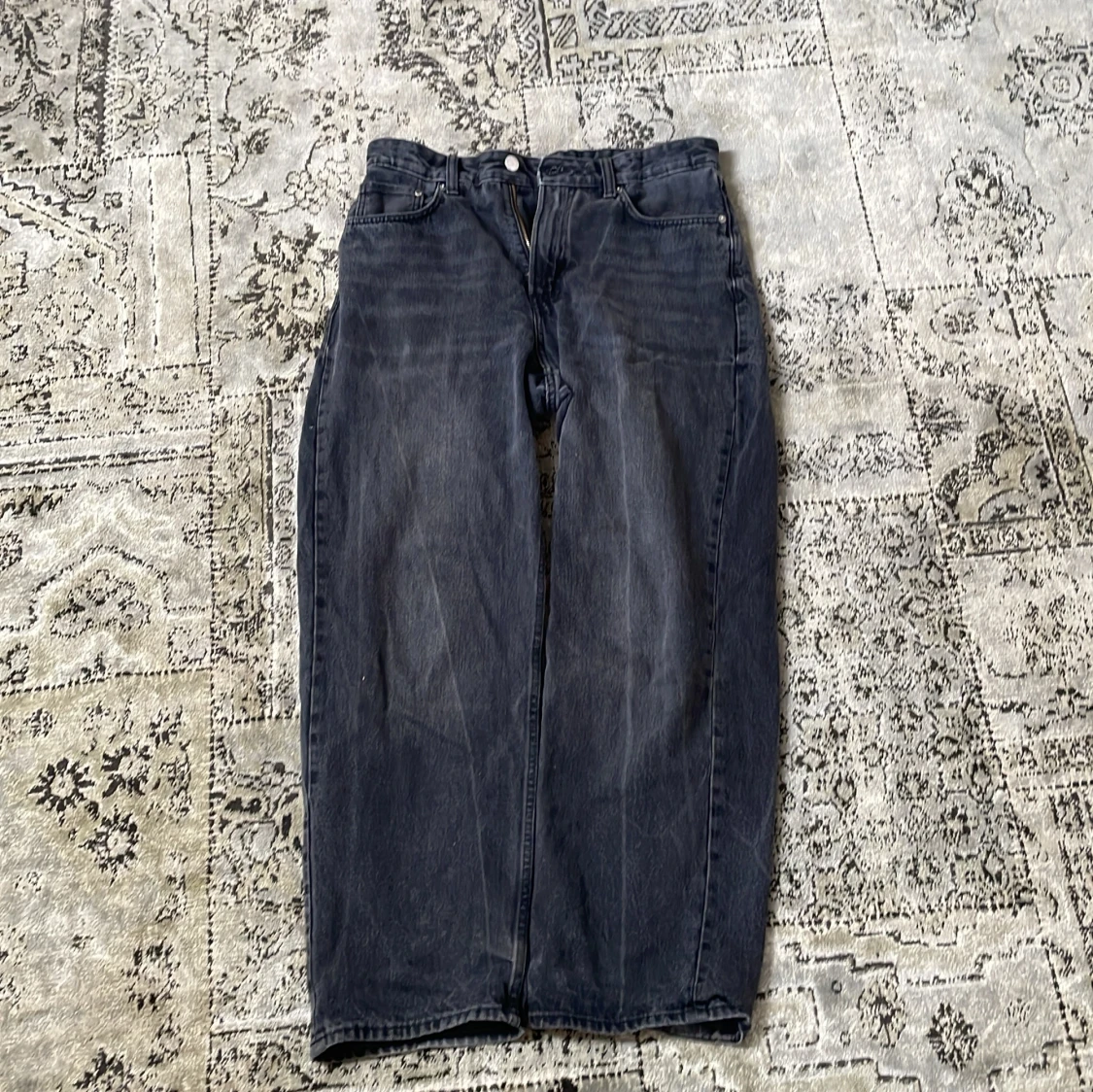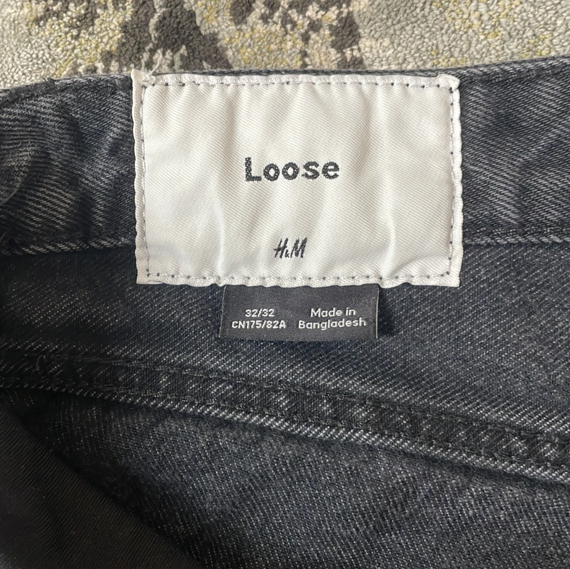 Säljer ett par svarta loose fit jeans från H&M i storlek 32/32. Jeansen har klassisk femficksdesign, dragkedja och knapp framtill samt bälteshällor. Bara att pruta ner pris om ni ska köpa