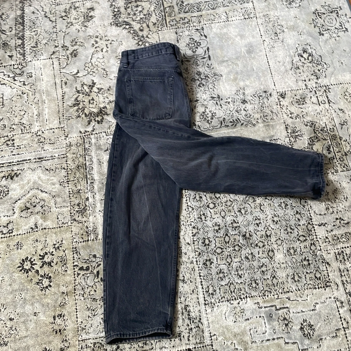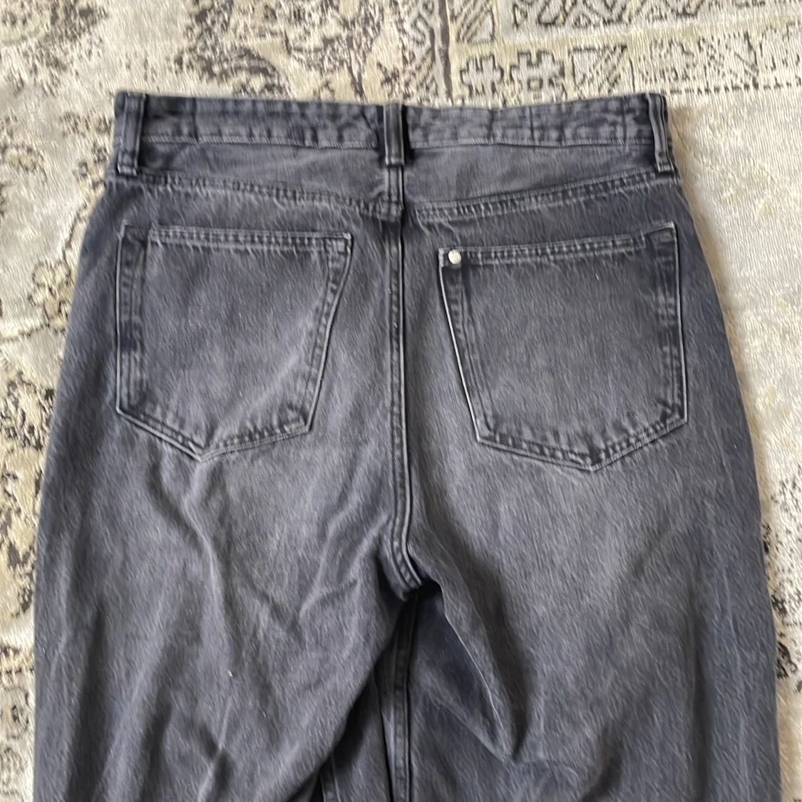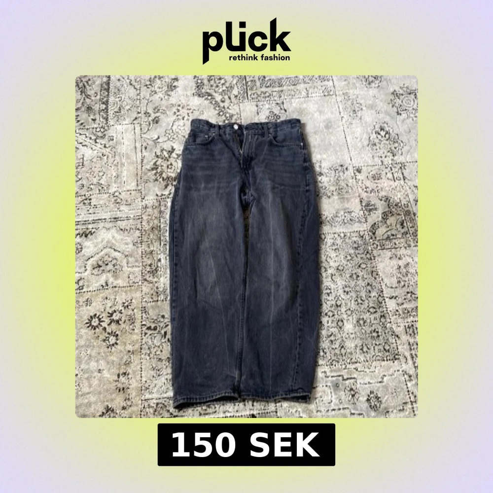Säljer ett par svarta loose fit jeans från H&M i storlek 32/32. Jeansen har klassisk femficksdesign, dragkedja och knapp framtill samt bälteshällor. Bara att pruta ner pris om ni ska köpa