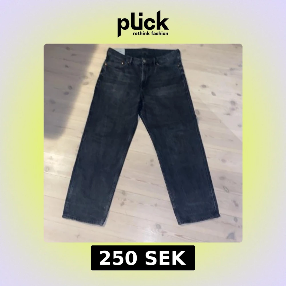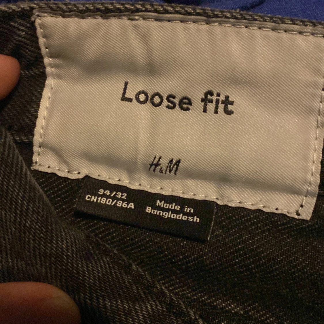 Svarta jeans från H&M i loose fit-modell. Klassisk femficksdesign och raka ben, perfekta för en avslappnad och trendig look. Jeansen är tillverkade i ett robust denimtyg och har en snygg mörk tvätt.