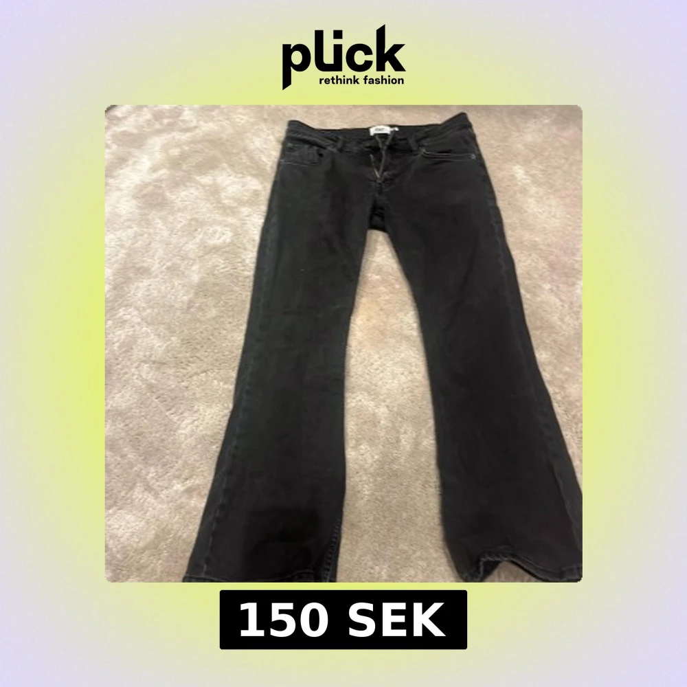 Svarta jeans från lager 157 med klassisk femficksmodell och raka ben. Jeansen har låg midja och är helt nya inprinsip dem är använd 3 gånger så färgen är kvar. Storlek M short men skulle säga att det passar S med