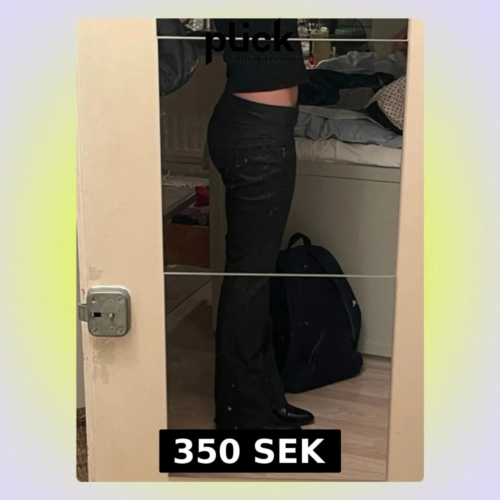 Säljer ett par svarta byxor med låg midja och raka ben. Byxorna har snygga dragkedjor vid fickorna och dubbla knappar i midjan. Perfekta för dig som vill ha en stilren look med sportig känsla. Det är inte läder byxor eller fakeläder utan mer styva i materiallet! Helt ny skick då hag kanppt användt dem!