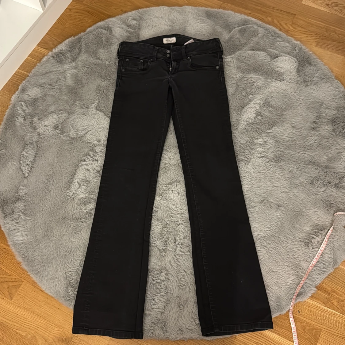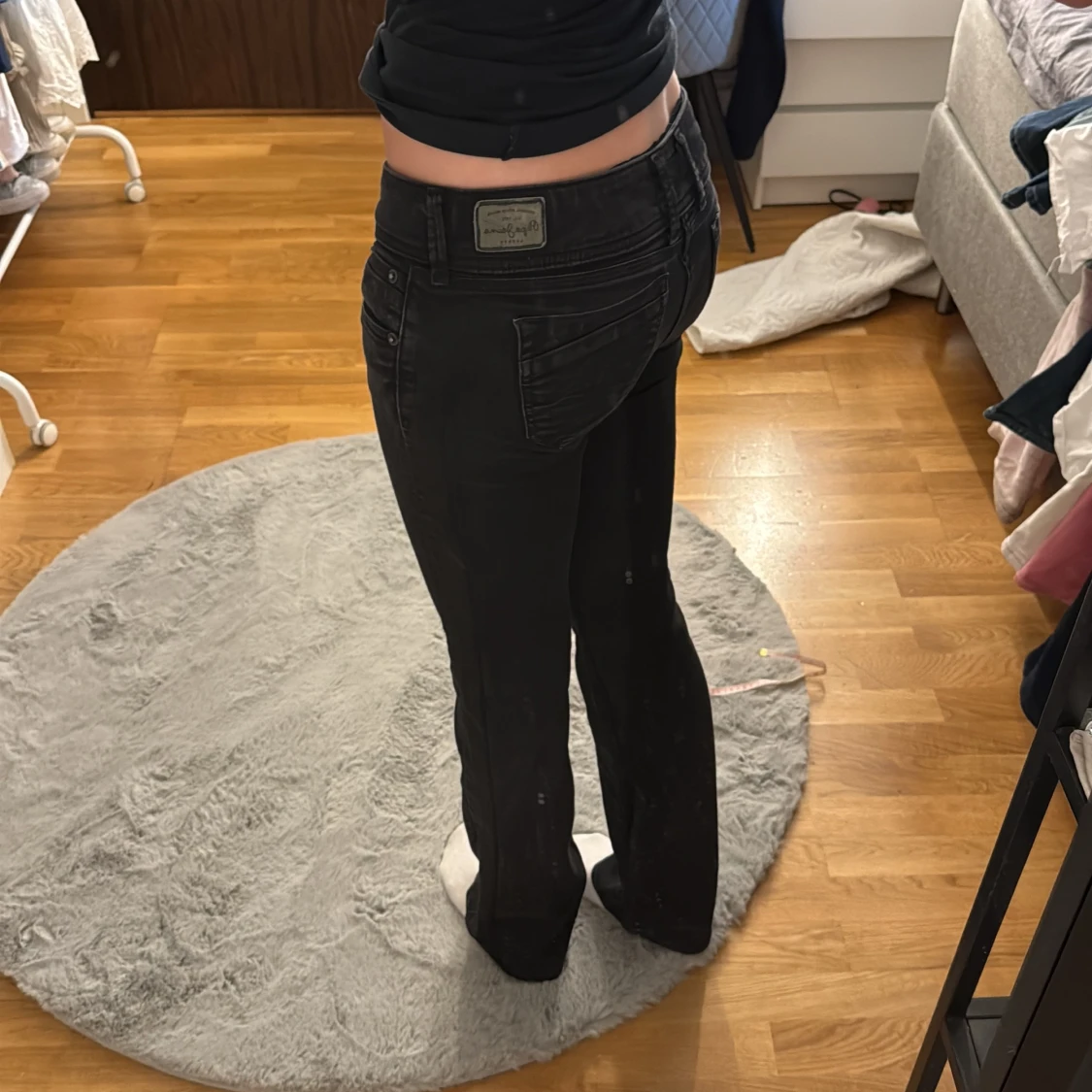 Super snygga svarta ltb som är lågmidjade och bootcut , storlek 26/34. Midjemått 35 o innerbenslängden 82. Jag är 170
