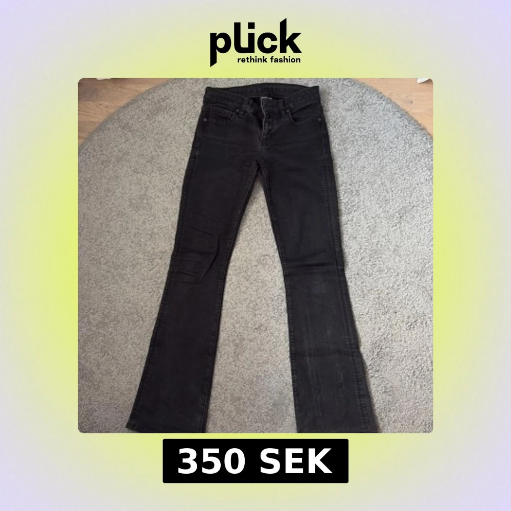 Snygga svarta jeans med bootcut passform och klassisk femficksdesign från American eagle. Jeansen är mid rise och är tillverkade i ett stretchigt denimtyg som sitter skönt. Användes knappt, och är i super bra skick. Super stretchiga också!