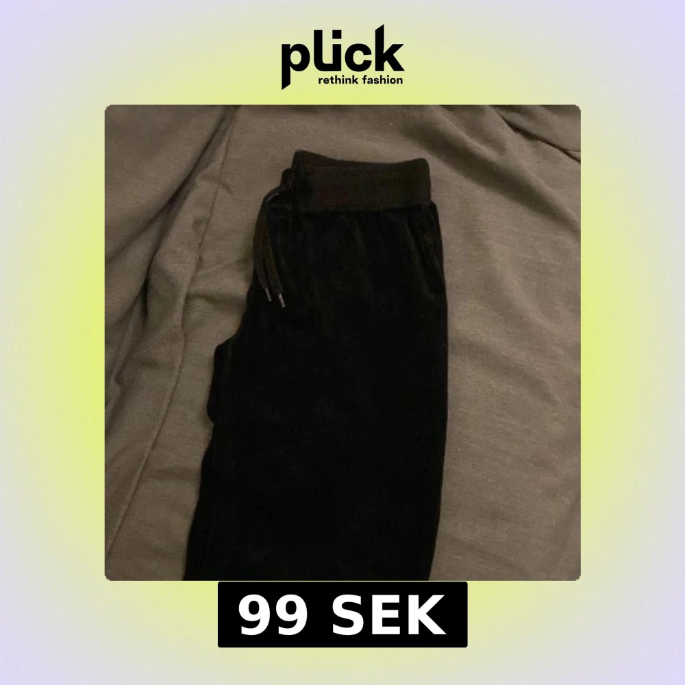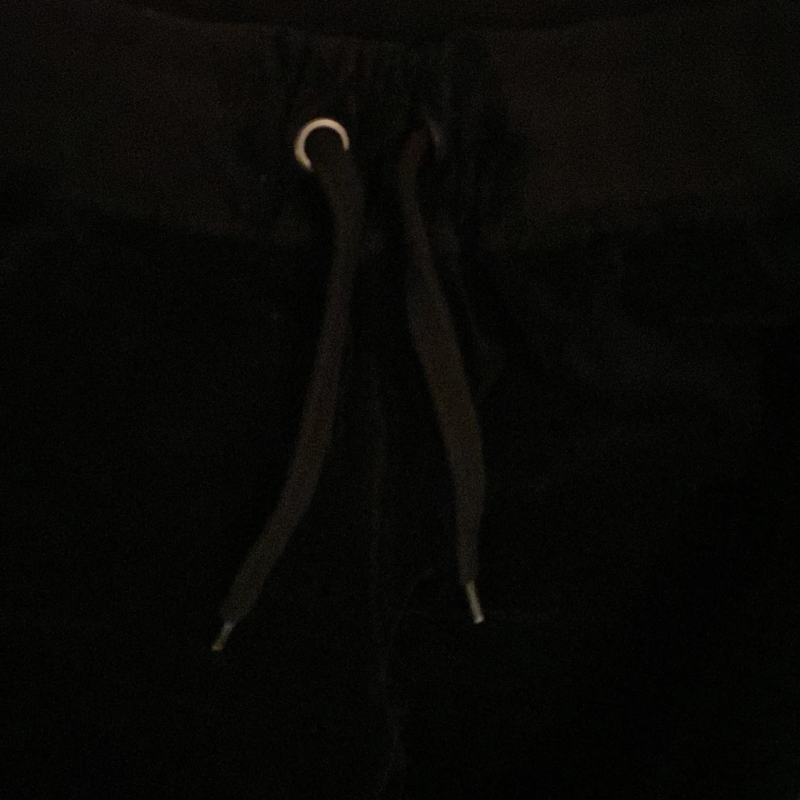 Svarta mjukis byxor. Dom har material som juicy byxor! Härliga och lite bootcut/raka. Två snören och härliga att använda.
