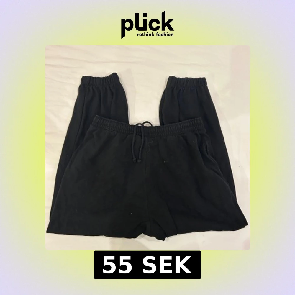 Svarta mjukisbyxor från H&M i storlek S. Byxorna har resår i midjan med snörning och resår vid bensluten. Tillverkade i mjukt bomullsmaterial med inslag av polyester, perfekta för chill eller träning.