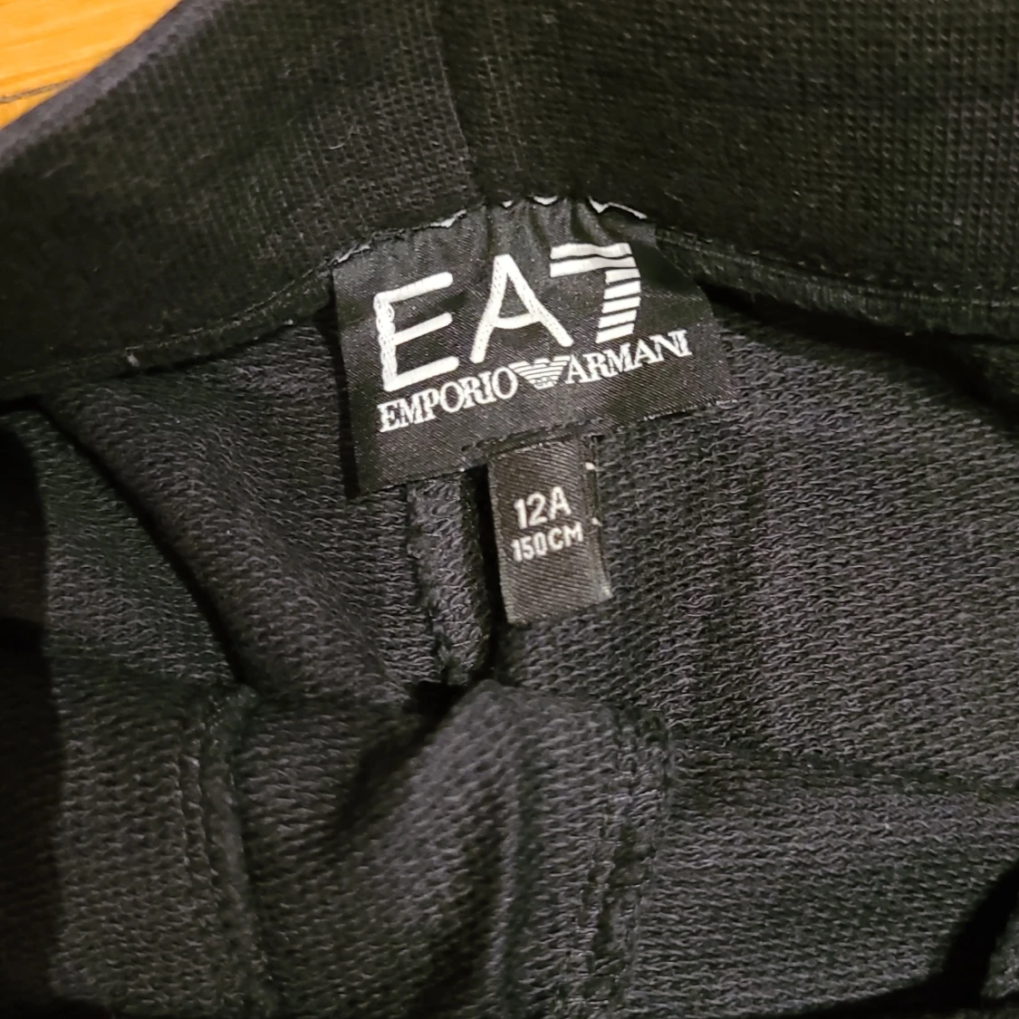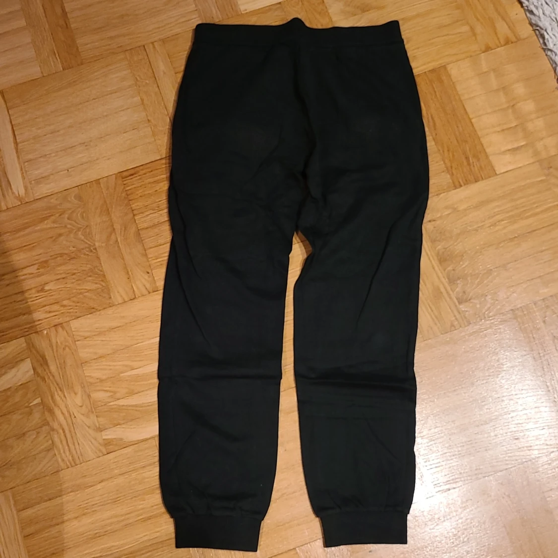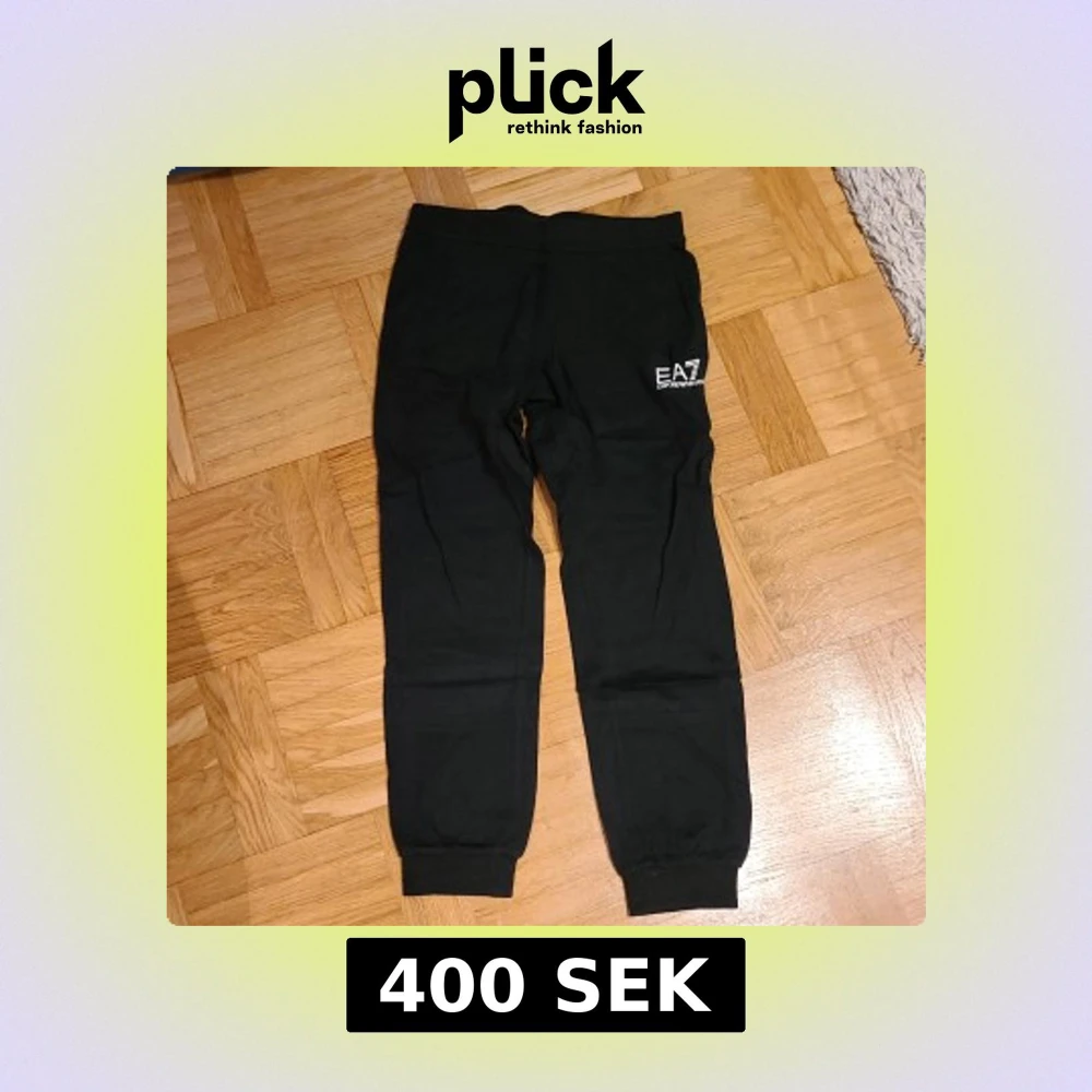 Svarta mjukisbyxor från EA7 Emporio Armani med logga tryckt på ena benet. Byxorna har resår i midjan och muddar vid bensluten för en skön och avslappnad passform. Perfekta för chill eller träning.