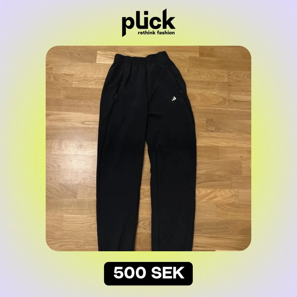Säljer ett par svarta mjukisbyxor från Adidas med elastisk midja och diskret logga på benet. Perfekta för en avslappnad stil eller träning.
