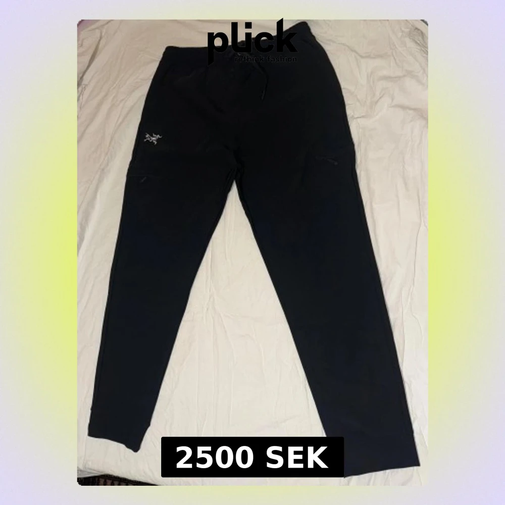 Svarta mjukisbyxor från Arc'teryx med broderad logga på vänster lår. Byxorna har snörning i midjan, dragkedjeförsedda fickor och ribbade muddar vid bensluten. Sköna och stilrena, perfekta för chill eller träning.