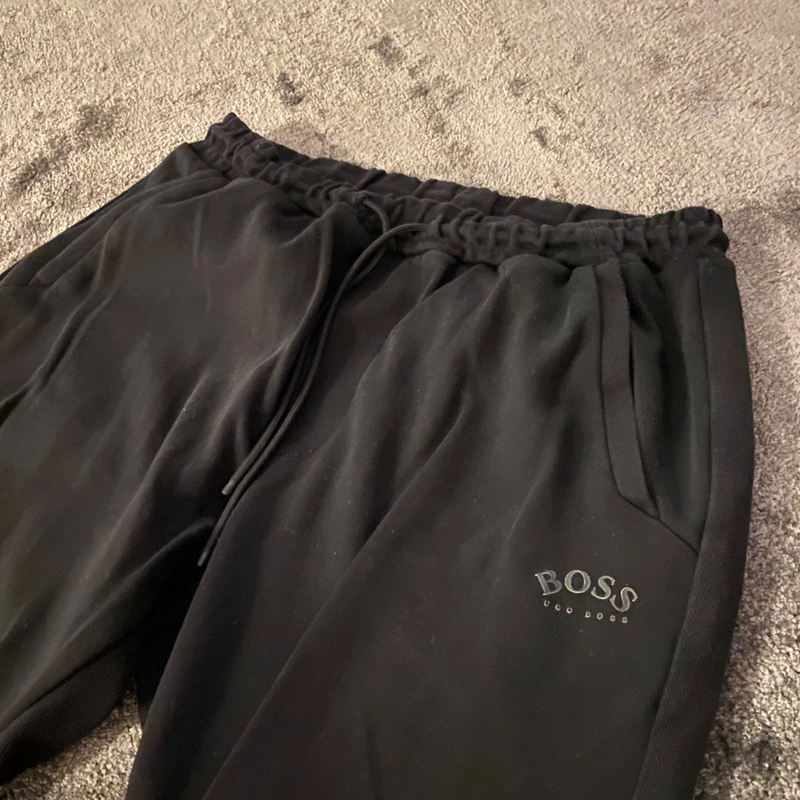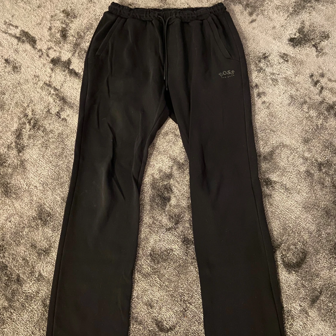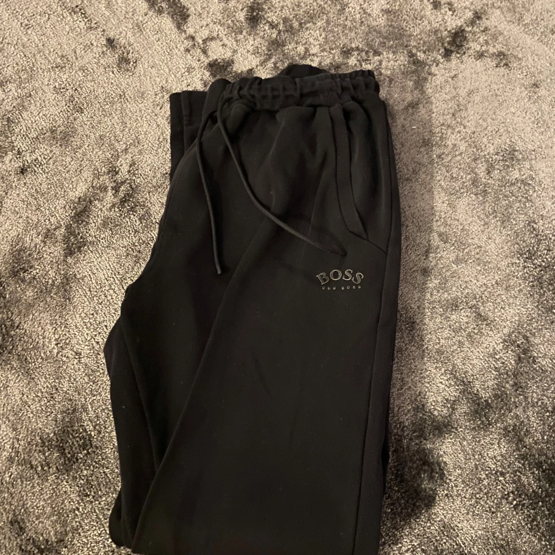 Svarta mjukisbyxor från BOSS med dragsko i midjan och två sidofickor. Byxorna har en stilren logga på vänster sida och är tillverkade i ett mjukt material som känns skönt mot huden. Perfekta för en chill look och enkel att matcha med hoodies eller t-shirts.
