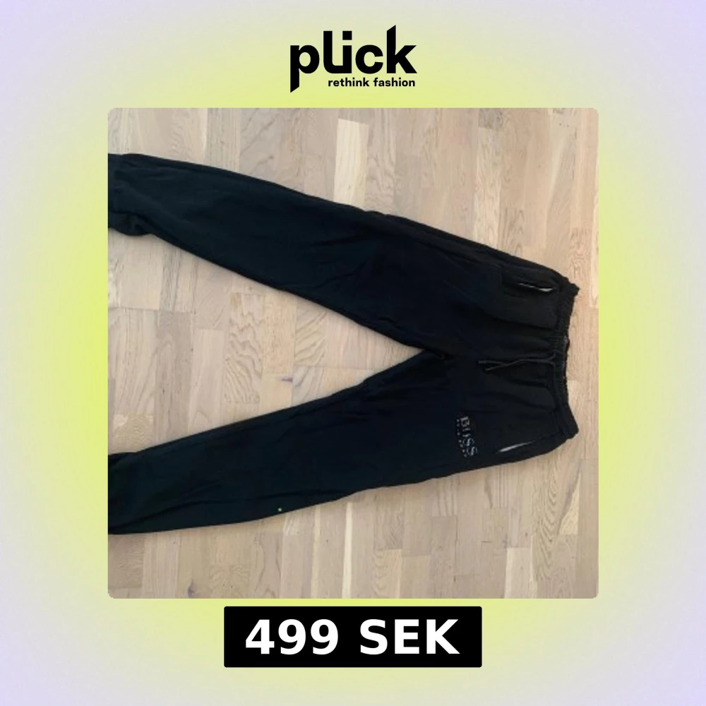 Svarta mjukisbyxor från BOSS med dragsko i midjan och muddar vid bensluten. Byxorna har fickor med dragkedja och en diskret BOSS-logga på låret. Perfekta för chill eller träning.