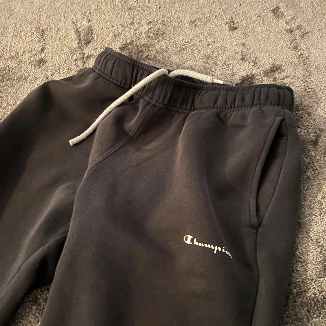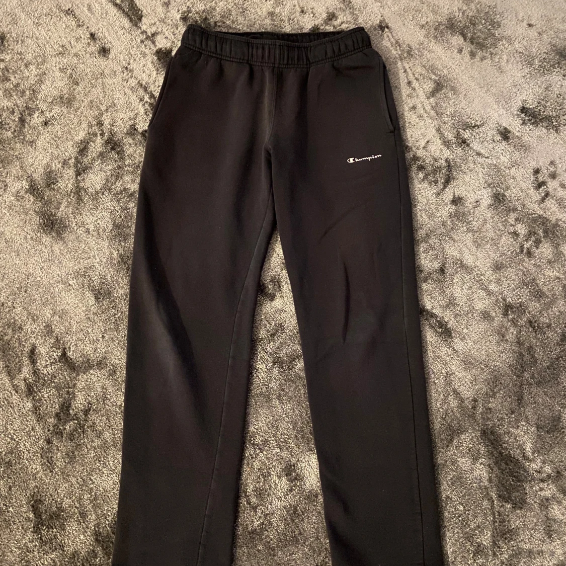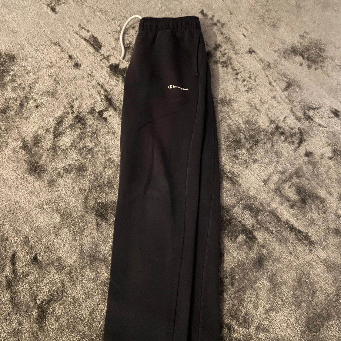 Svarta mjukisbyxor från Champion med vit logga på vänster ben. Byxorna har elastisk midja med vit snörning och två sidofickor. Tillverkade i mjukt material som är perfekt för chill eller träning. Klassisk och enkel design som funkar till det mesta.