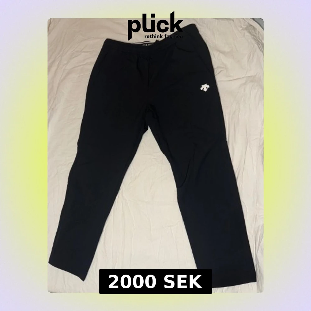 Svarta mjukisbyxor från Descente med vit logga på benet och elastisk midja med snörning. Byxorna har en rak passform och är tillverkade i mjukt syntetmaterial, perfekta för chill eller träning. Snyggt tryck på midjebandet ger extra stilpoäng.
