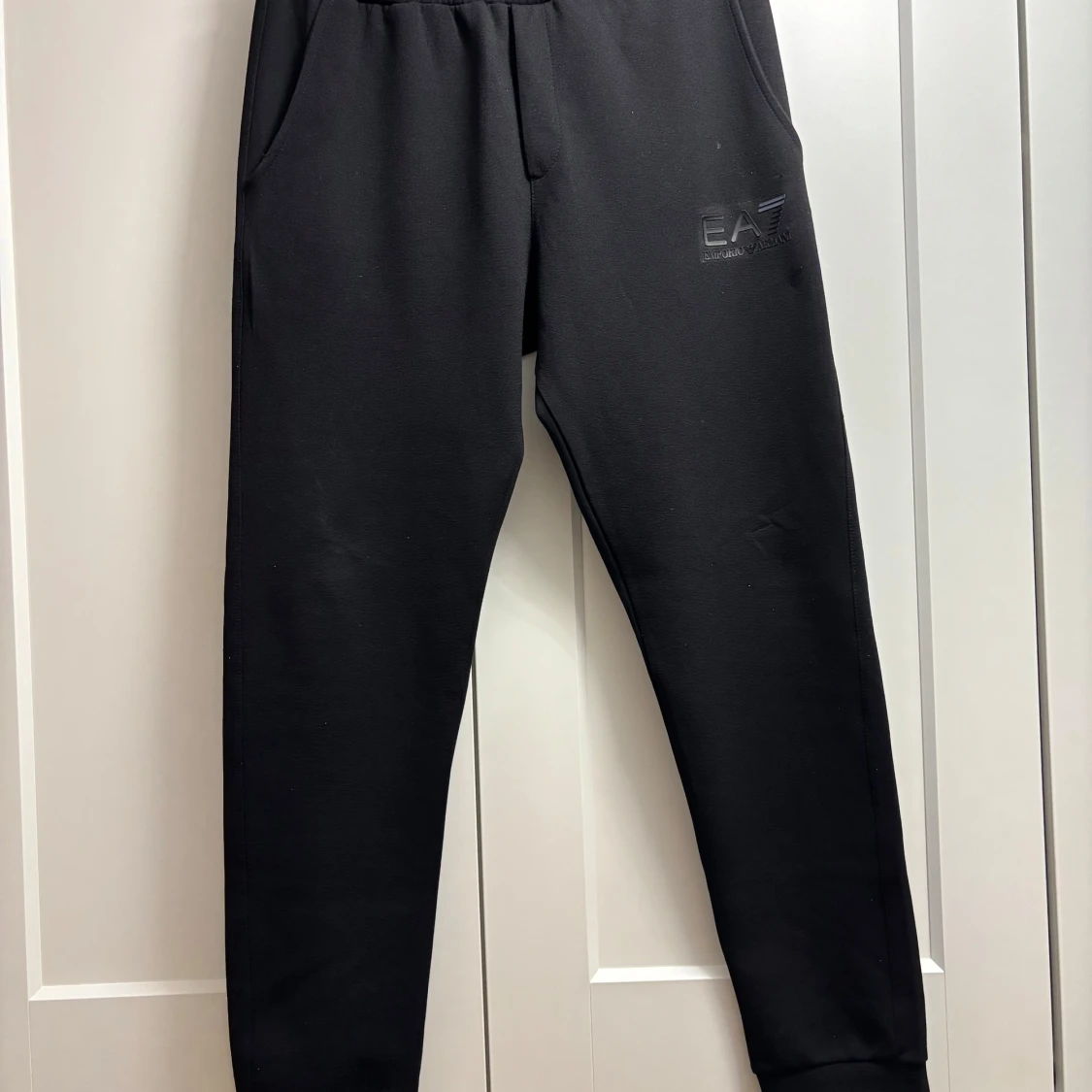 Snygga svarta mjukisbyxor från EA7 med elastisk midja och fickor fram och bak. Perfekta för en avslappnad stil. EA7-loggan är diskret placerad på framsidan.