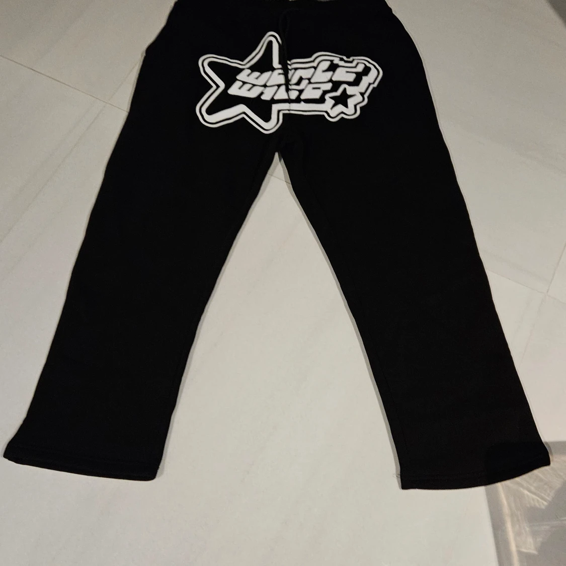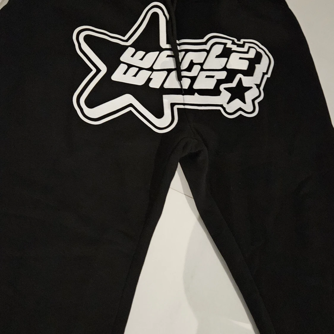 Snygga svarta mjukisbyxor från FSBN med ett coolt vitt tryck på baksidan. Byxorna har en avslappnad passform och är perfekta för en bekväm stil. Tillverkade i Turkiet.