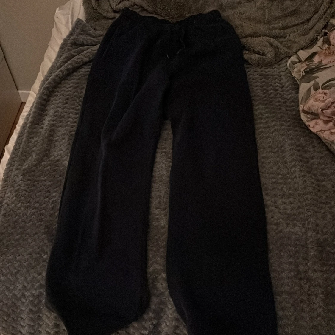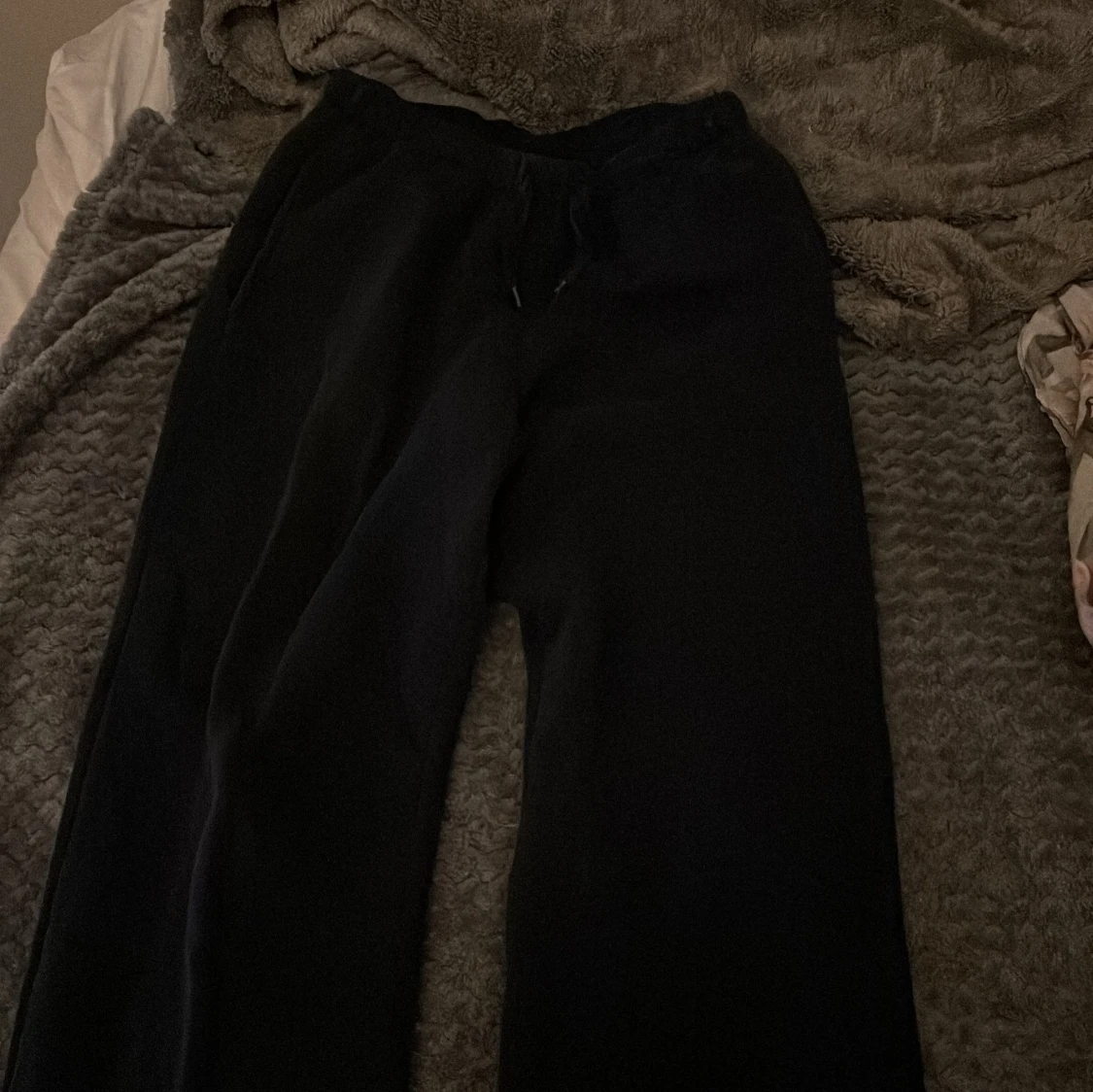 Svarta mjukisbyxor från Gina Tricot, basically basics-kollektionen. Byxorna har dragsko i midjan och raka ben. Perfekta för chill dagar eller när du vill vara bekväm. Klassisk och enkel design som funkar till allt.