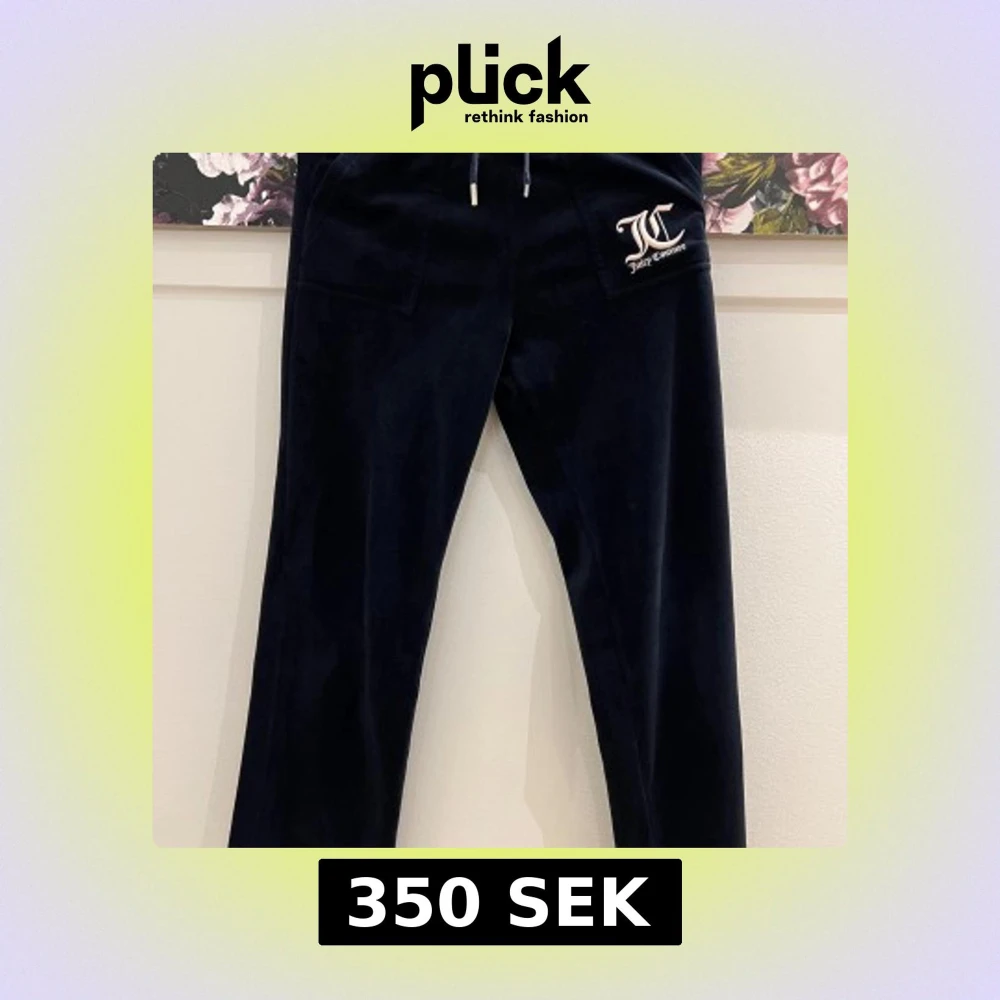 Snygga svarta mjukisbyxor från Juicy Couture med logga på framsidan. Byxorna har snörning i midjan och bakfickor med knappar. Perfekta för en avslappnad stil. Stl 9/10