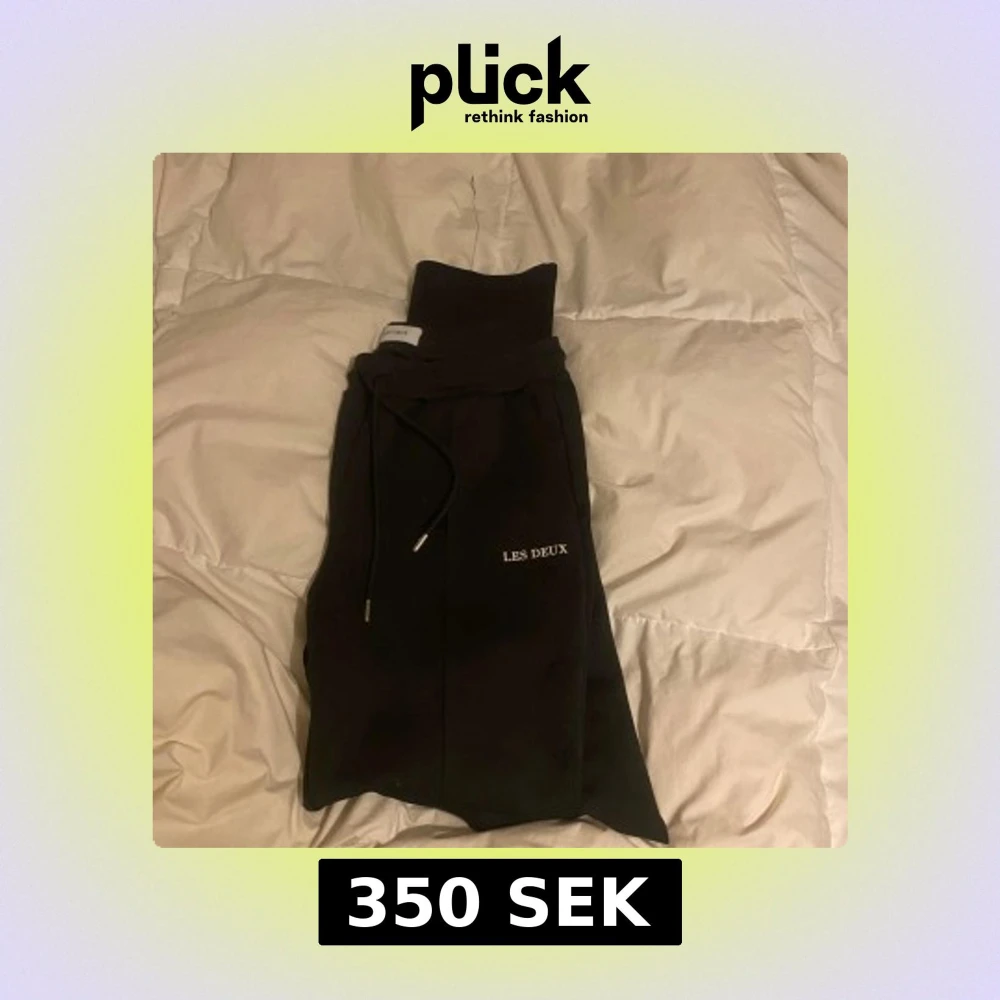 Svarta mjukisbyxor från Les Deux med broderad logga på benet. Byxorna har snörning i midjan och raka ben, tillverkade i mjukt bomullsmaterial. Perfekta för chill eller häng med kompisar. Snygg och enkel design med diskreta detaljer.
