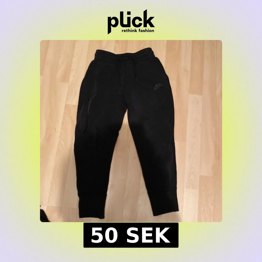 Säljer ett par svarta mjukisbyxor från Nike med dragsko i midjan och en diskret logga på benet. Byxorna har en dragkedja på sidan för extra förvaring. Perfekta för en avslappnad stil.