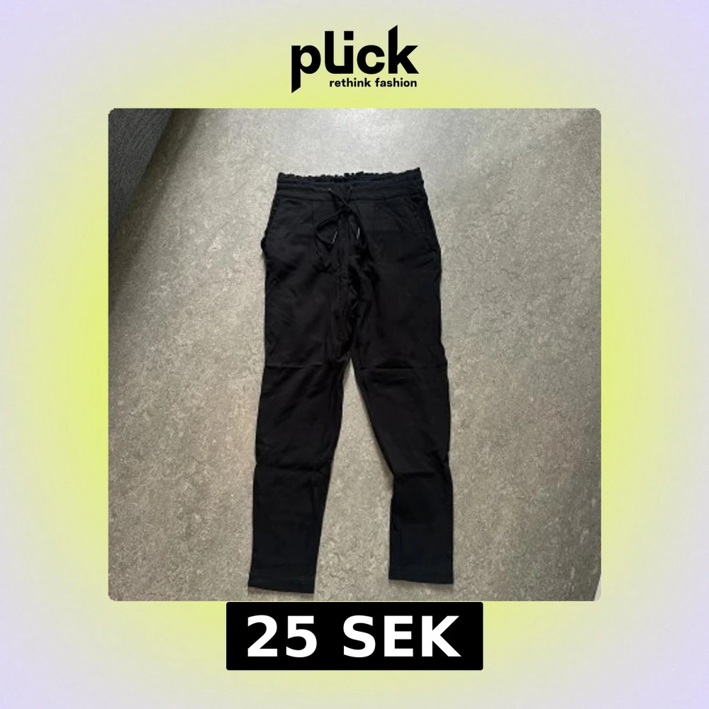Svarta mjukisbyxor från ONLY med elastisk midja och snörning. Byxorna har raka ben, fickor fram och bak samt en bekväm passform. Perfekta för chill dagar eller när du vill ha något skönt på dig. Storlek XS.
