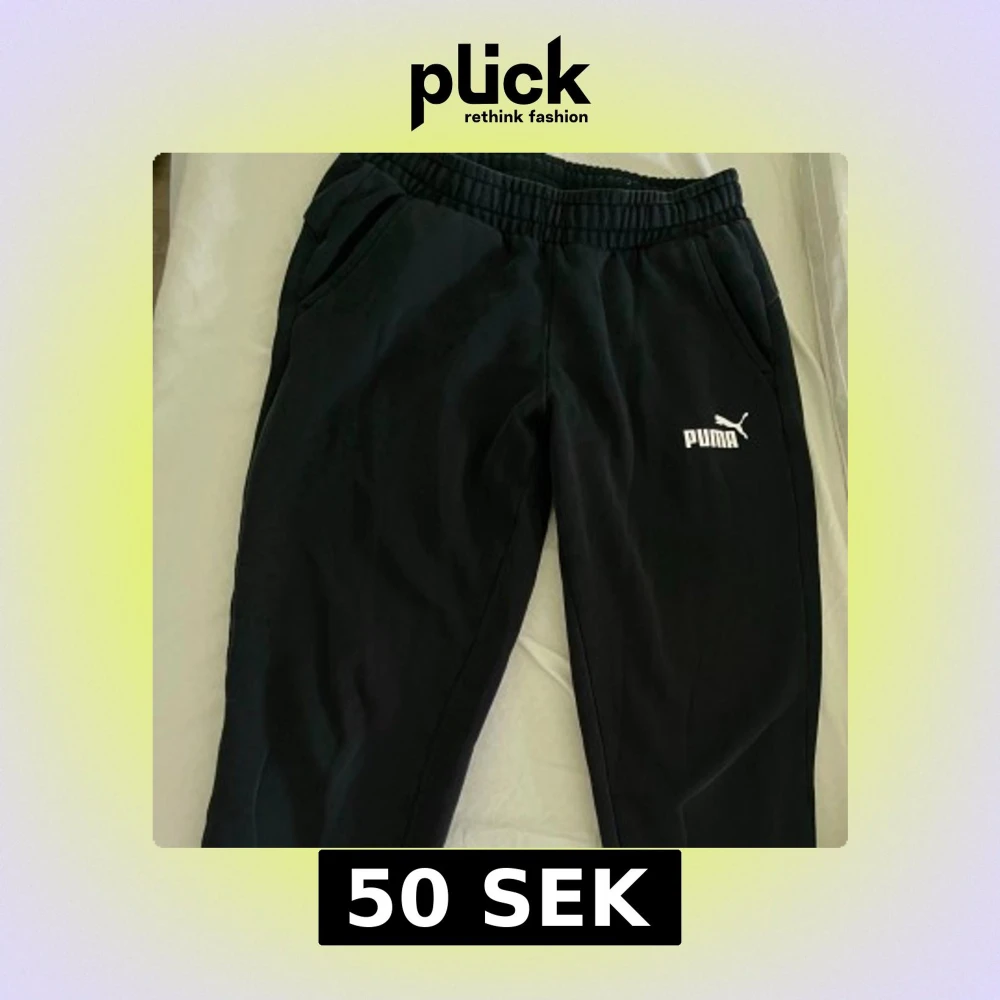 Svarta mjukisbyxor från Puma med elastisk midja och två sidofickor. Byxorna har en vit Puma-logga på låret och är gjorda i mjukt material som är skönt att ha på sig. Normal storlek, skulle säga unisex modell!🌸