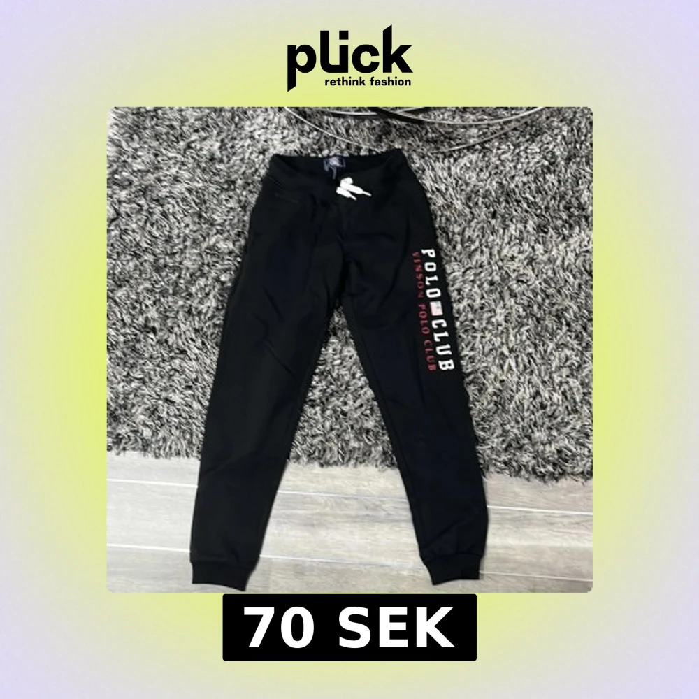 Snygga svarta mjukisbyxor från Vinson Polo Club med tryck på benet. Byxorna har en bekväm passform med resår och snörning i midjan samt muddar vid bensluten. Perfekta för en avslappnad stil.