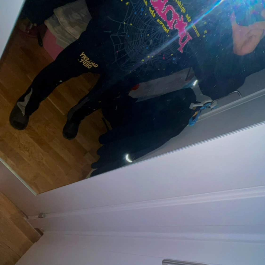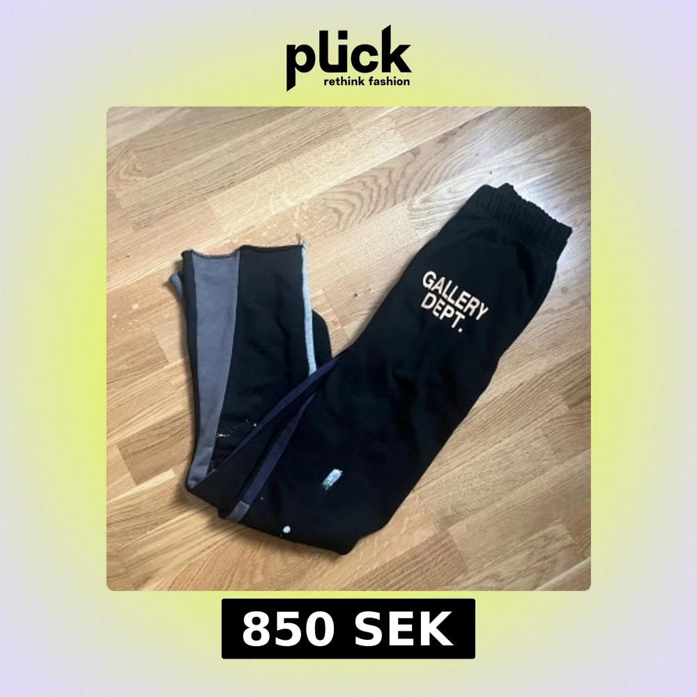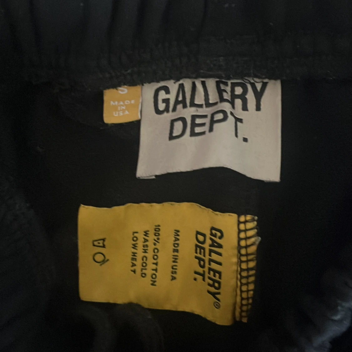 Svarta mjukisbyxor från Gallery Dept. med tryckt logga på benet. Byxorna har elastisk midja och är tillverkade i 100% bomull. Snygga kontrastpaneler i grått längs sidorna och unika färgstänk ger en cool streetwear-vibe.