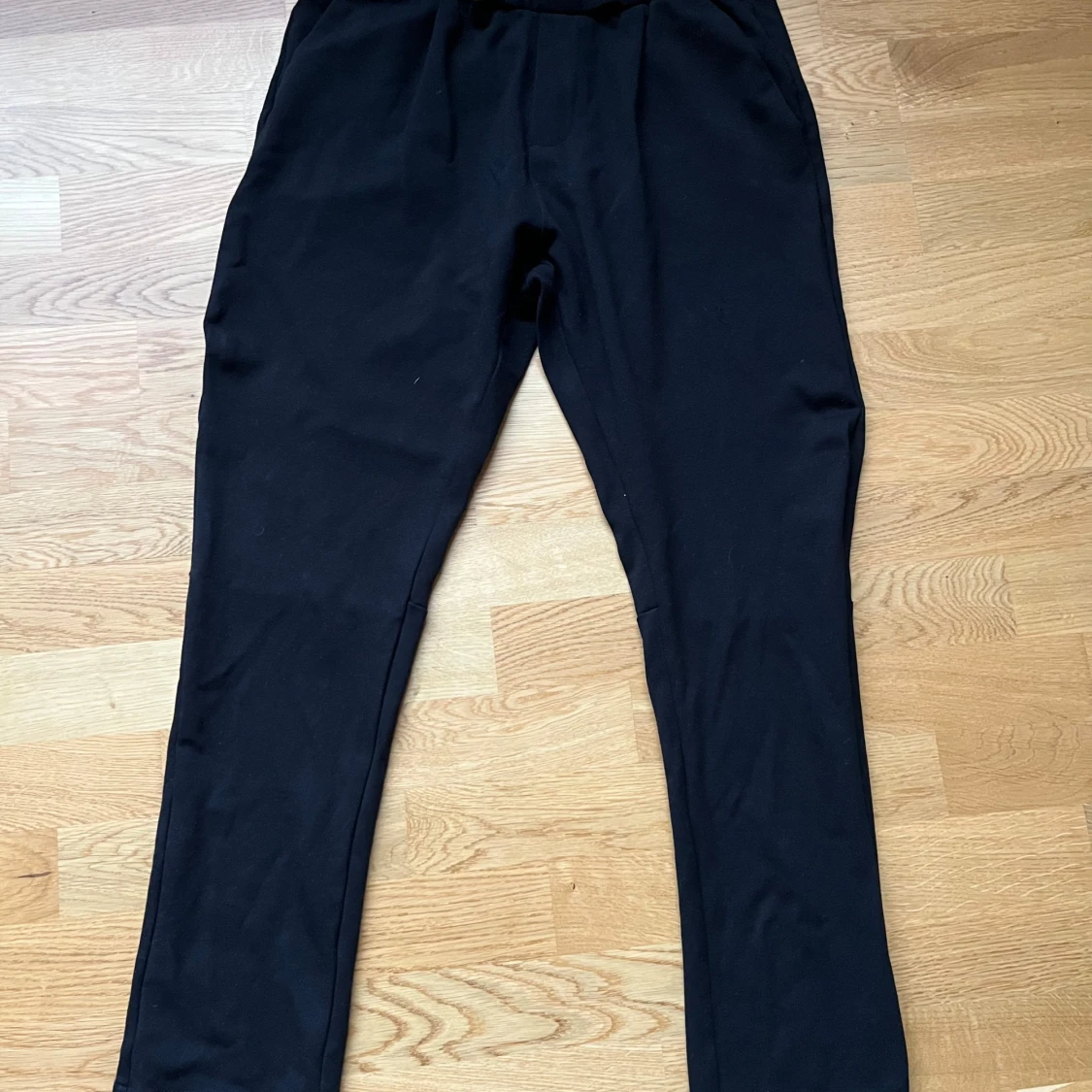 Svarta mjukisbyxor i storlek M från Lager 157 med elastisk midja och raka ben.