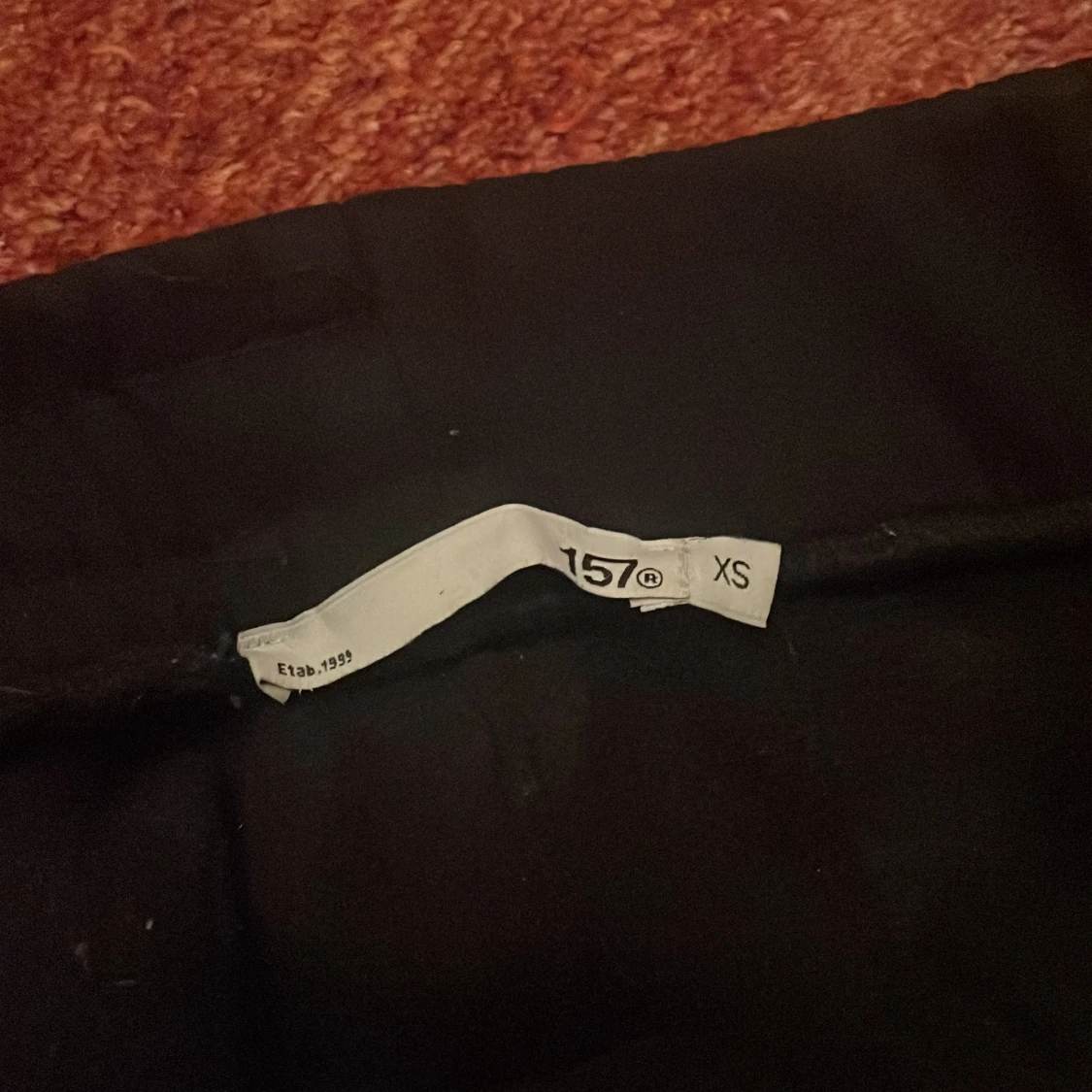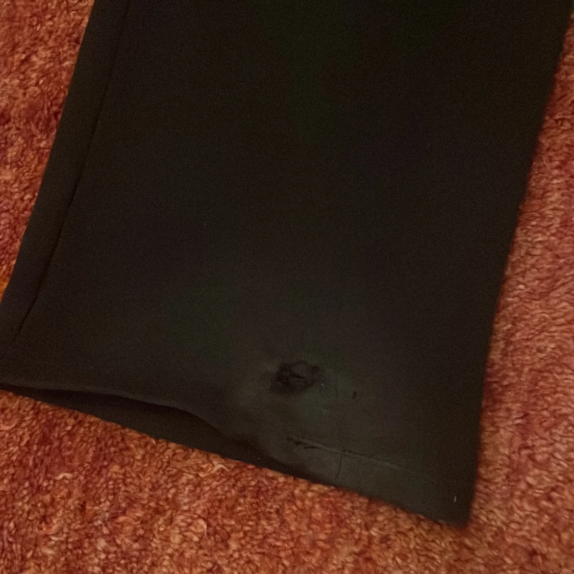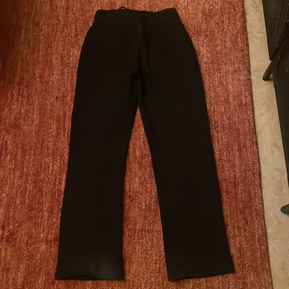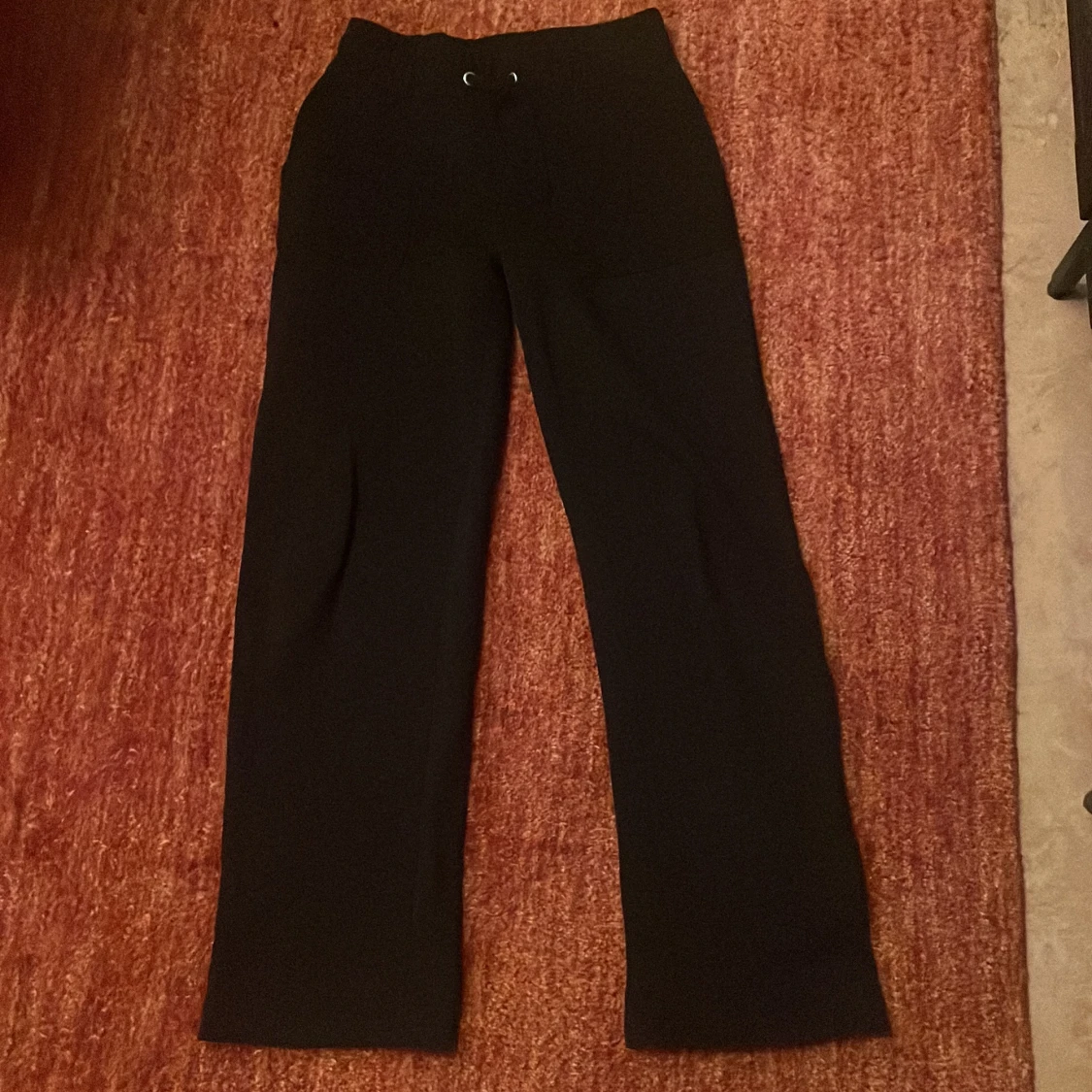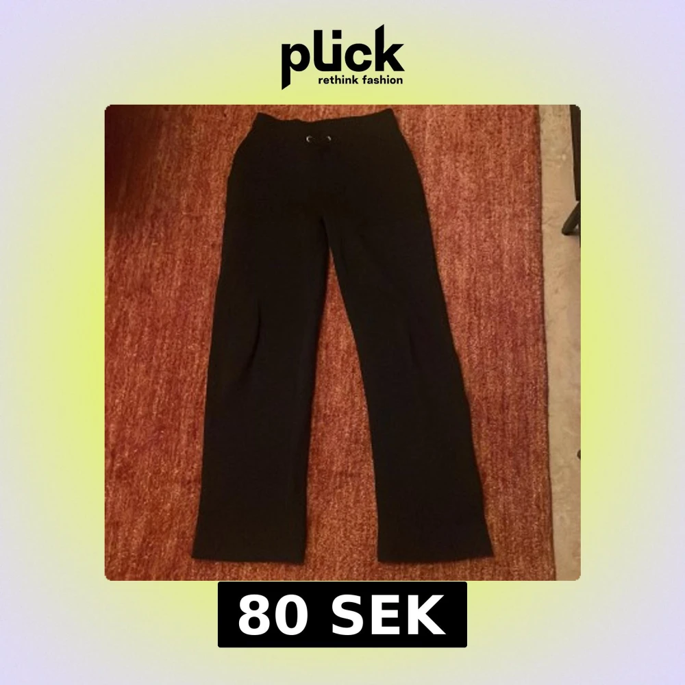 Säljer ett par svarta mjukisbyxor. Byxorna har en rak passform. Lite slitna på ena benet.