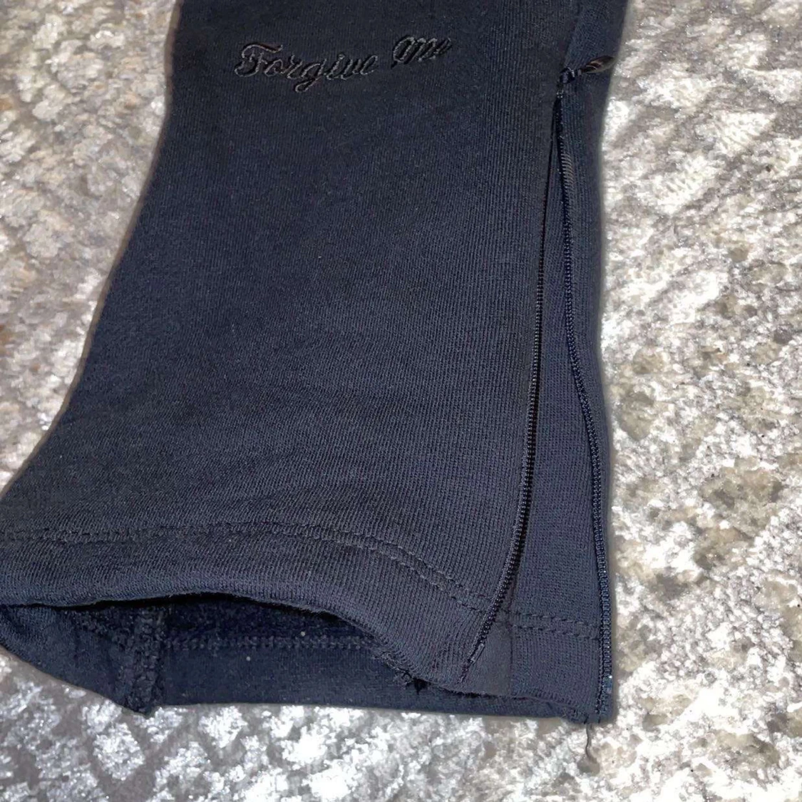 Svarta mjukisbyxor från Forgive Me med broderad text vid benet och coolt snörningsband i midjan. Byxorna har dragkedja vid benslut och en relaxed passform. Perfekta för chill dagar eller streetwear-stil.