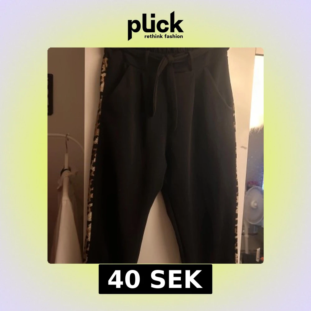 Svarta mjukisbyxor med leopardmönstrade revärer längs sidorna. Byxorna har resår i midjan och knytband framtill för extra komfort. Perfekta för en chill och trendig look. Mjukt material och praktiska fickor på sidorna.