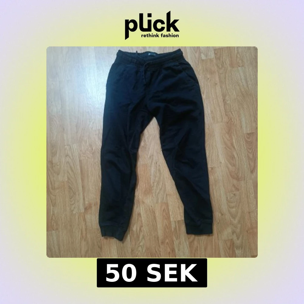 Svarta mjukisbyxor med resår i midjan och muddar vid bensluten. Byxorna har snörning i midjan och sidofickor samt en bakficka. Perfekta för chill eller träning, i mjukt bomullsmaterial.