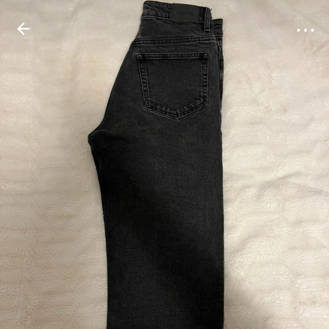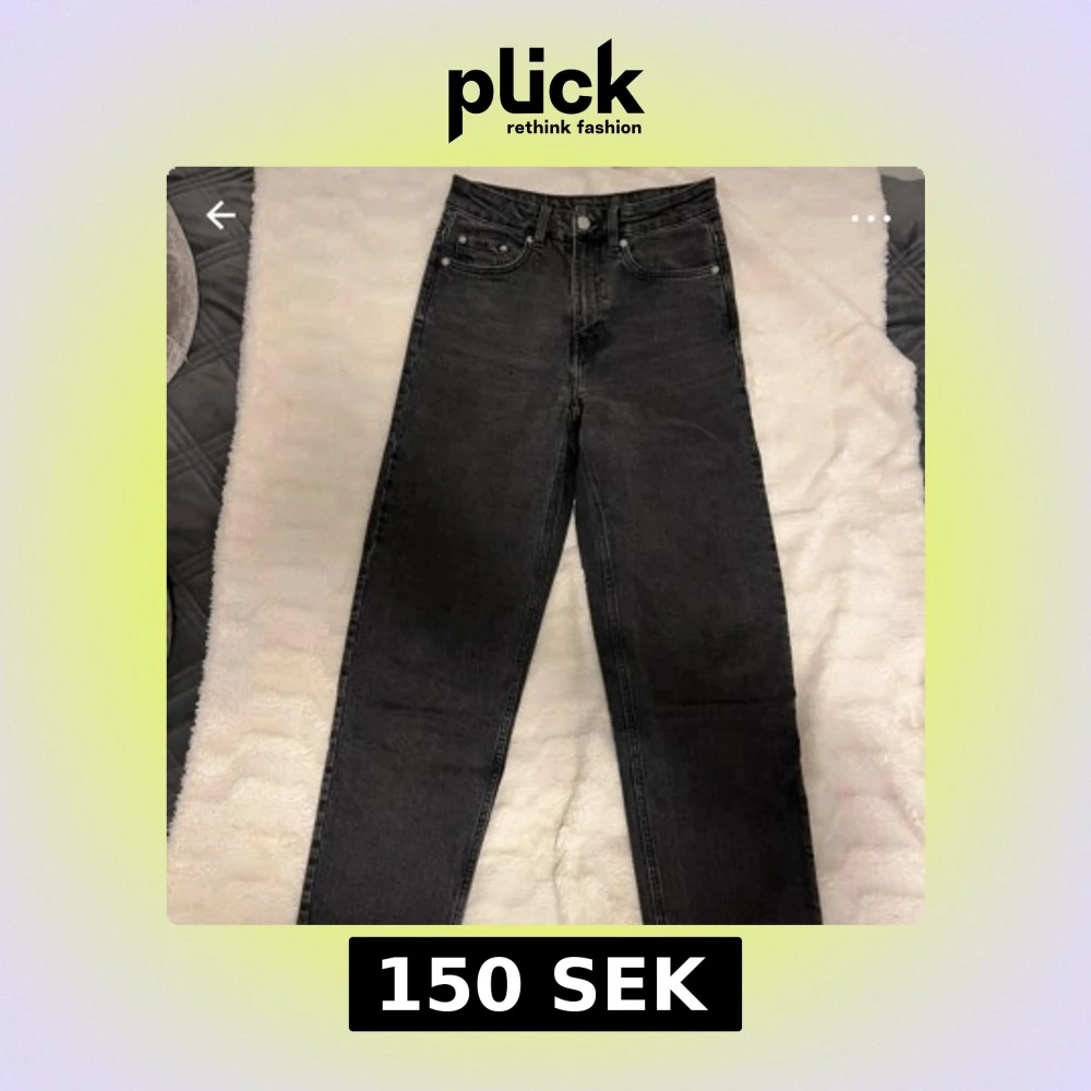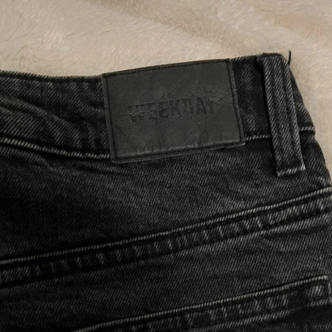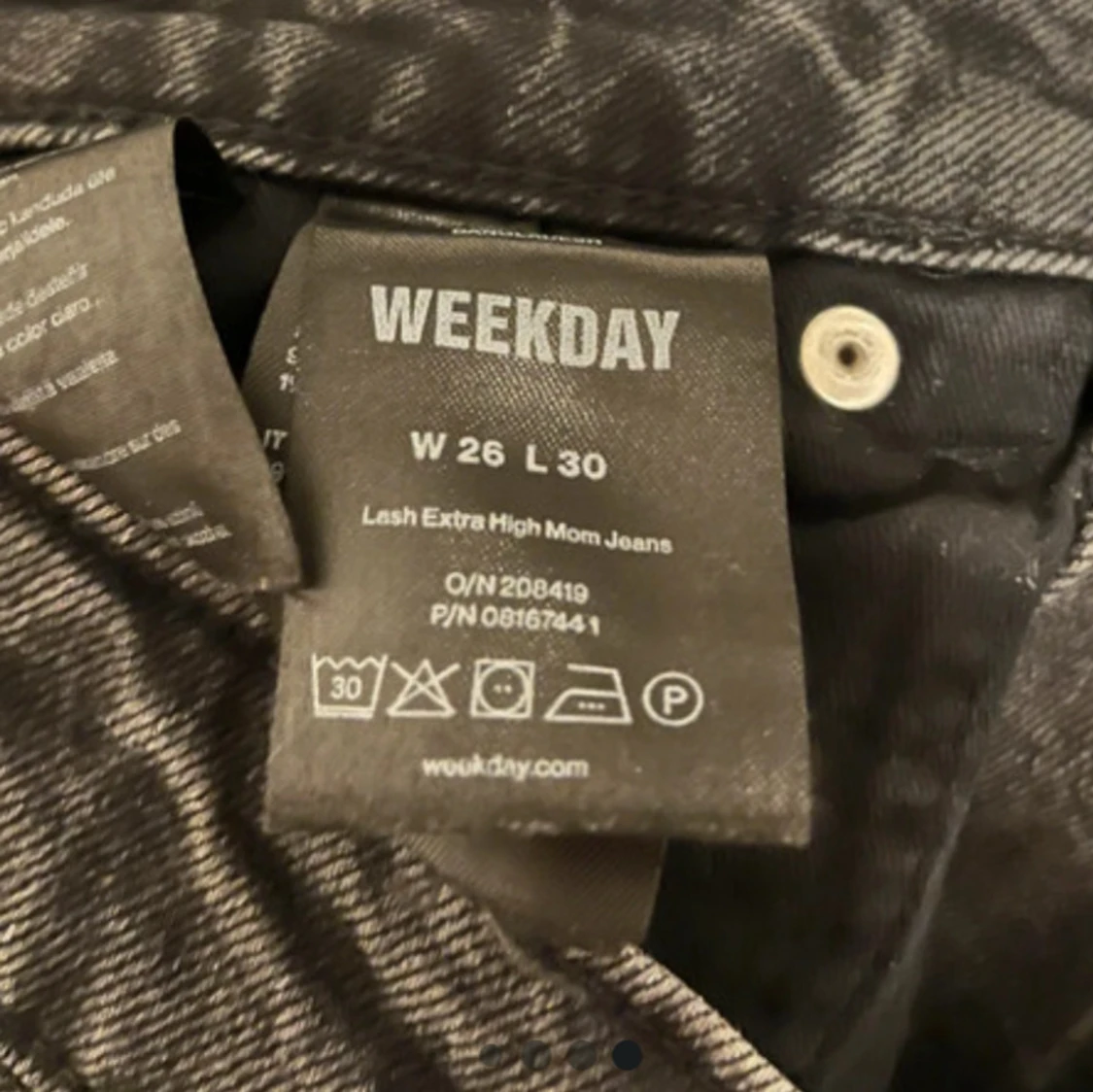Säljer ett par svarta mom jeans från Weekday, modell Lash Extra High. Jeansen har extra hög midja, raka ben och klassisk femficksdesign. Tillverkade i svart denim med en något tvättad look. Perfekta för dig som gillar en avslappnad men snygg stil.
